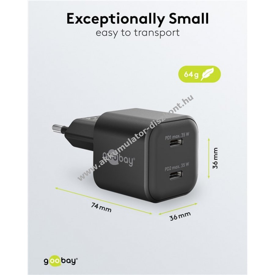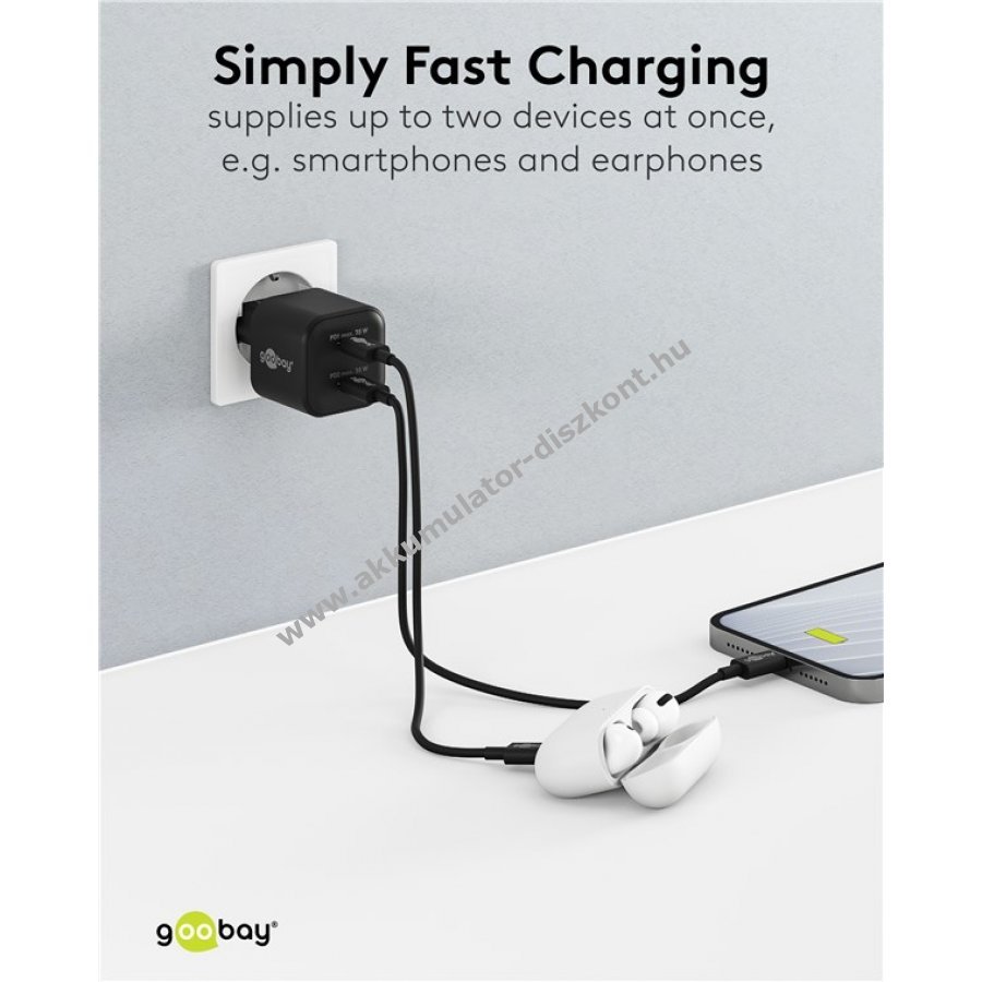 Goobay Twin Power 2x 35W USB-C töltő 2x 1m USB-C kábel fekete-fehér