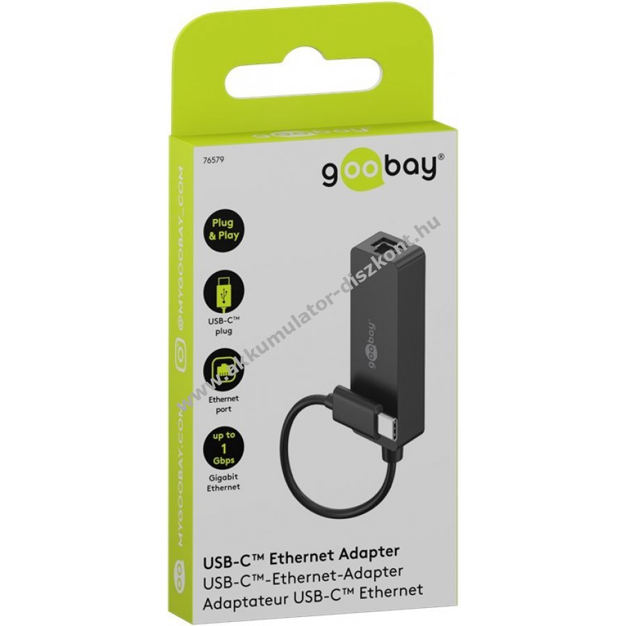 Goobay USB-C Ethernet adapter fekete RJ45 csatlakozóval PC és MacBook számára
