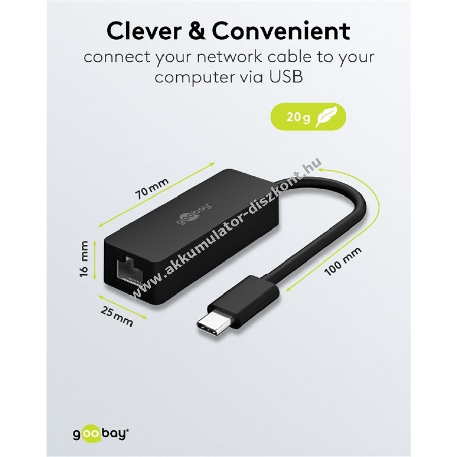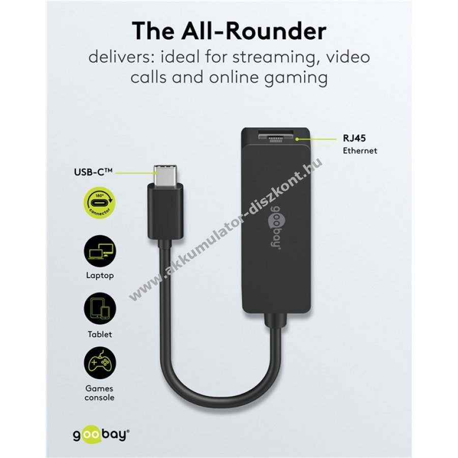 A vezetékes internet stabilabb és zavarmentesebb, mint a Wi-Fi, de a laptopon nincs Ethernet-csatlakozó. A Goobay USB-C LAN adapter egyszerűvé teszi a hálózati kábel csatlakoztatását.