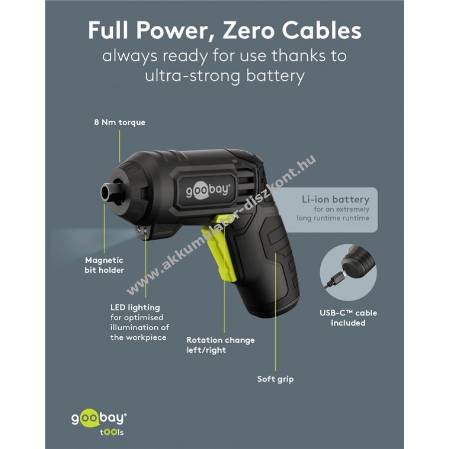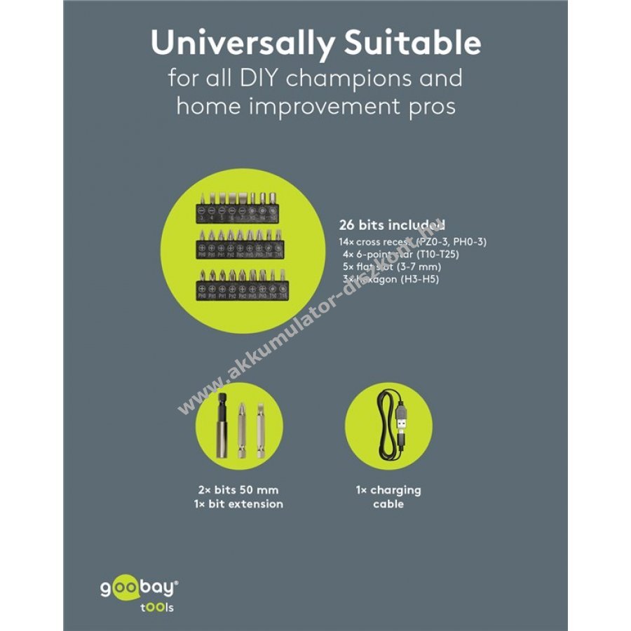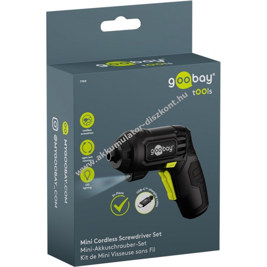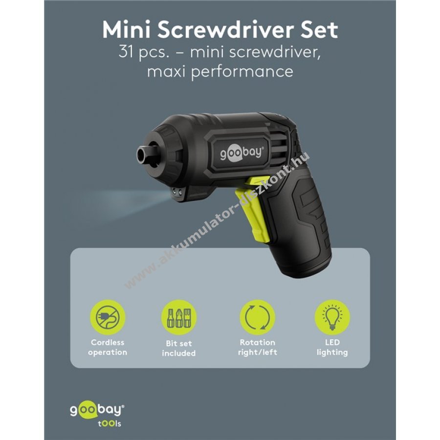 Goobay Tools mini Akkumulátors csavarozó készlet 31db-os pisztolyforma
