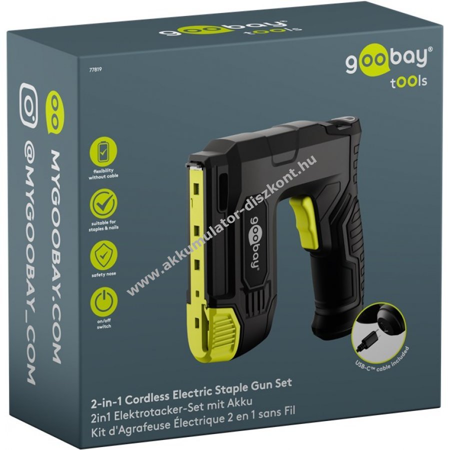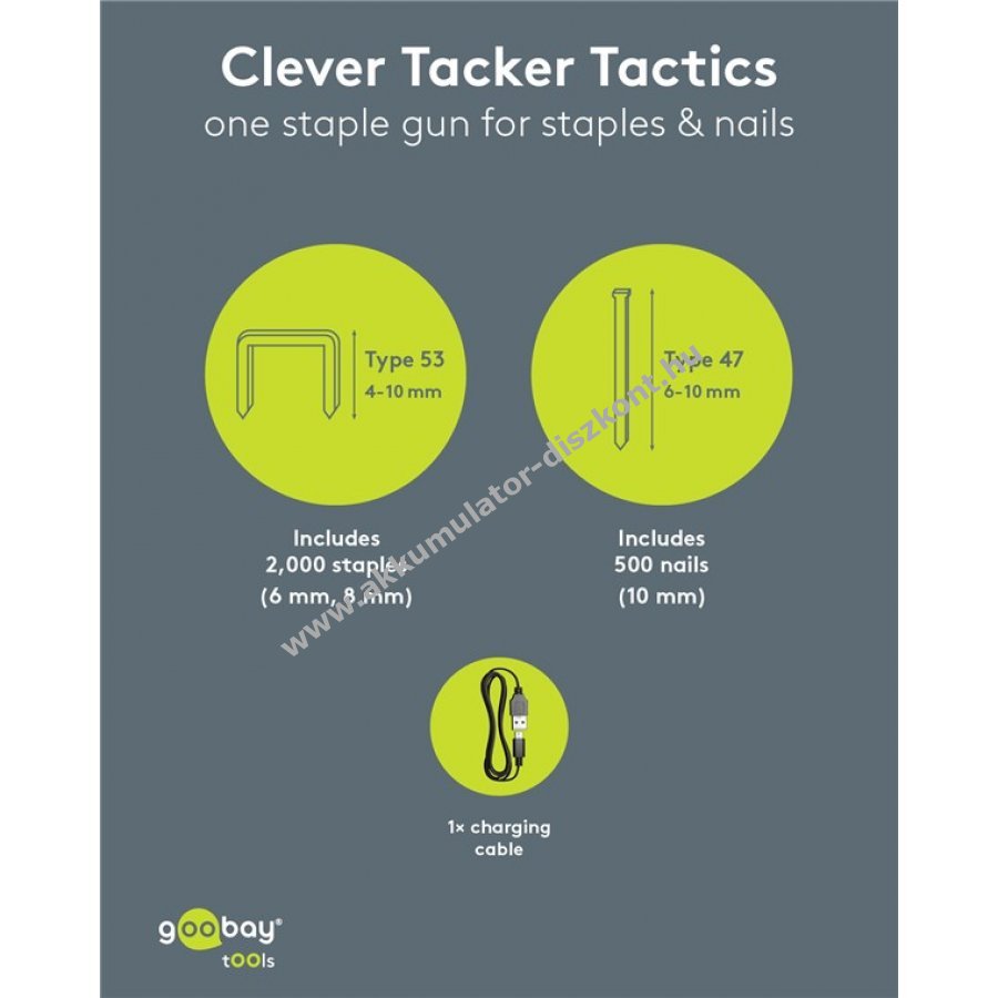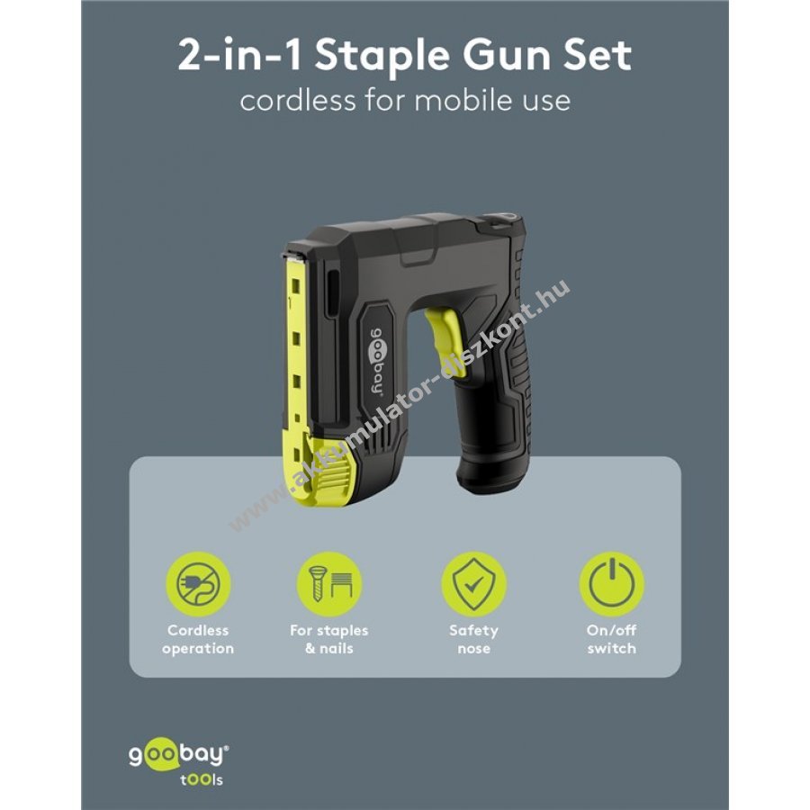 Goobay Tools 2in1 vezeték nélküli elektrotacker Akkumulátorval és tartozékokkal