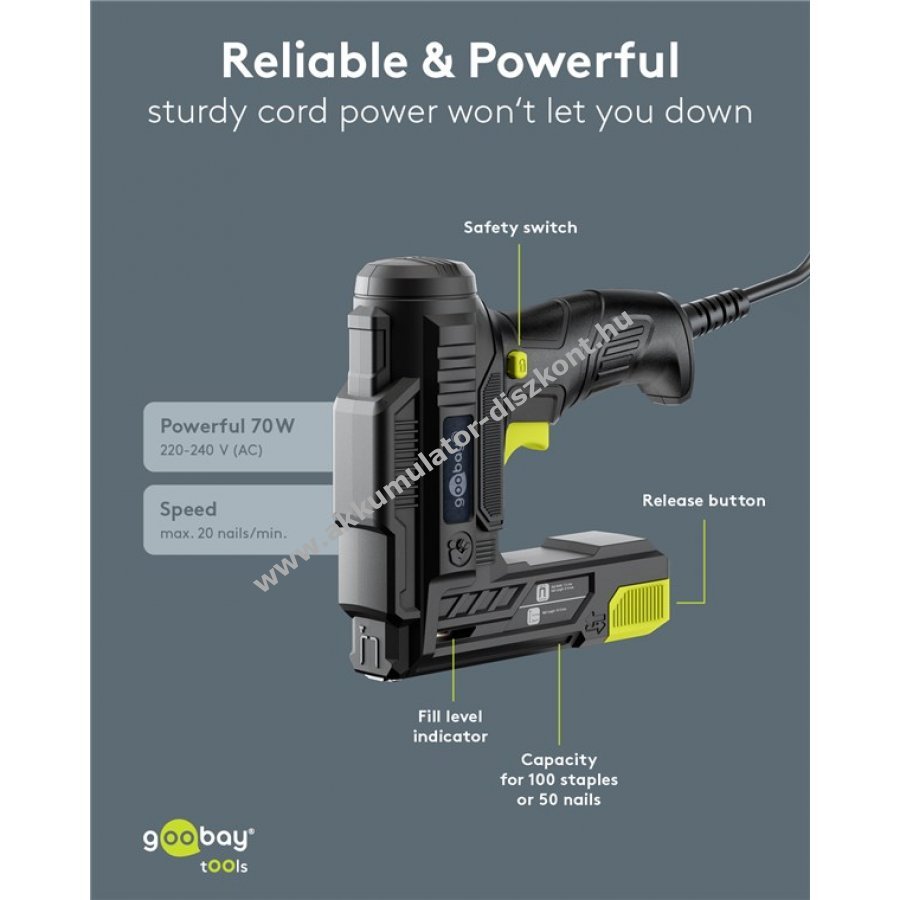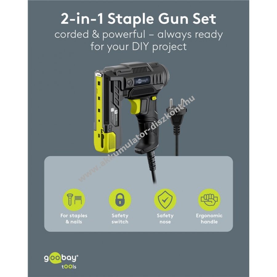 - 2 az 1-ben funkció: kapcsokkal és szögekkel is használható, így felújítási munkákhoz is rugalmasan alkalmazható