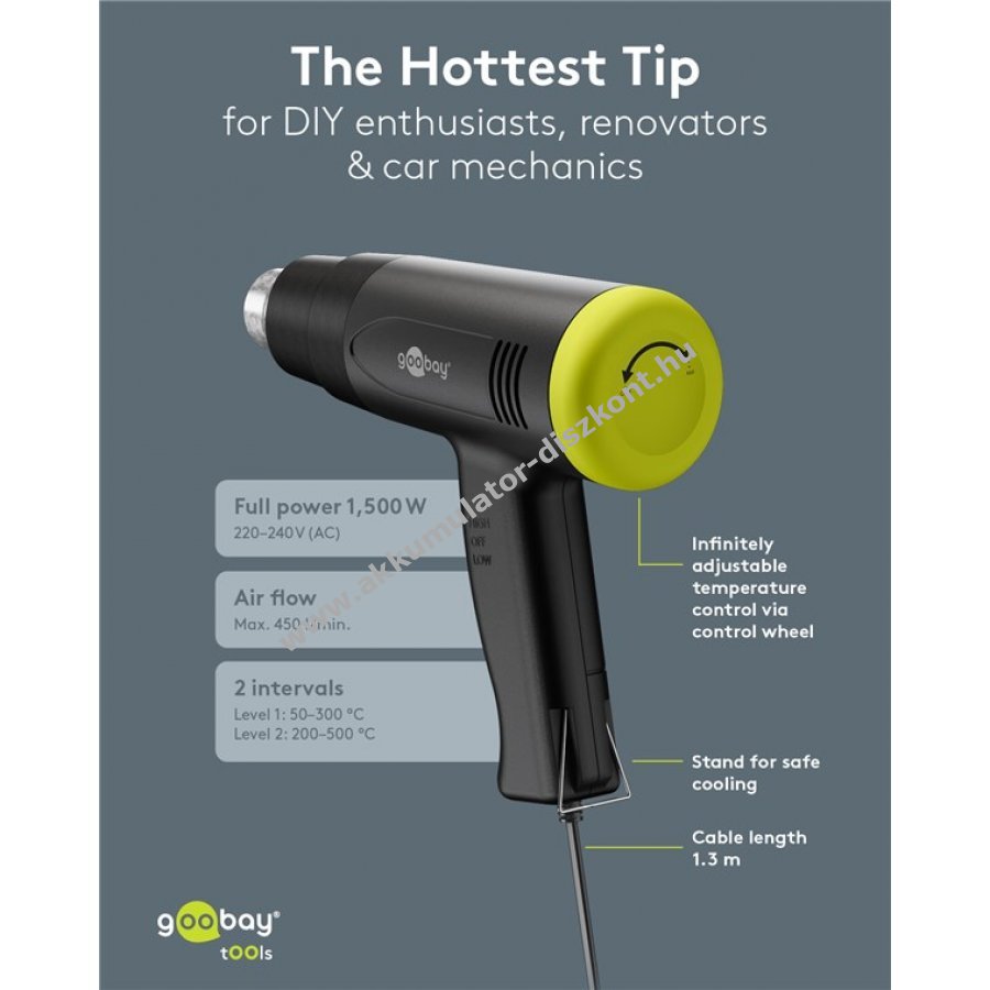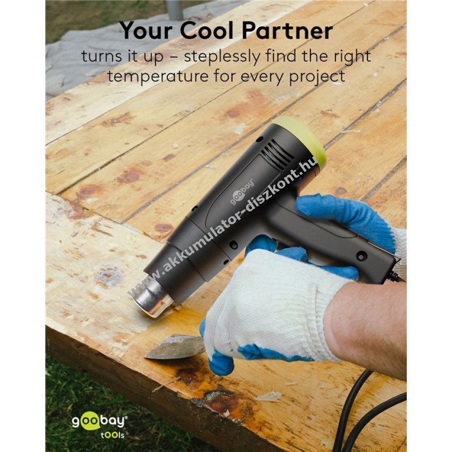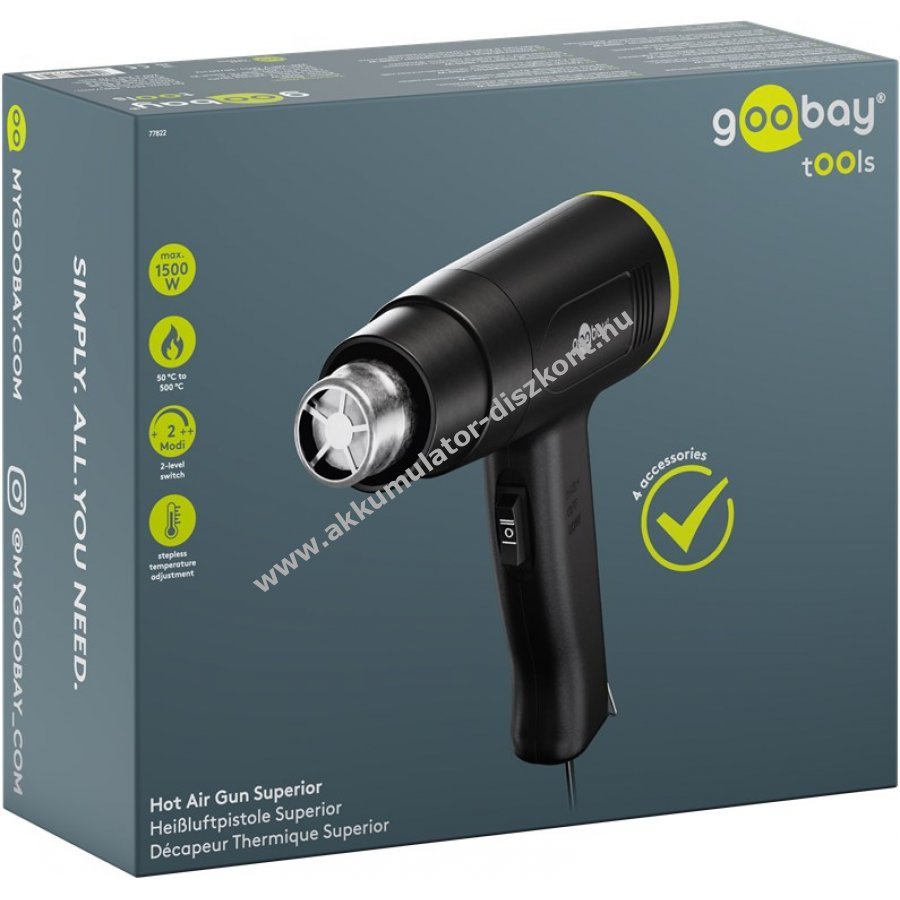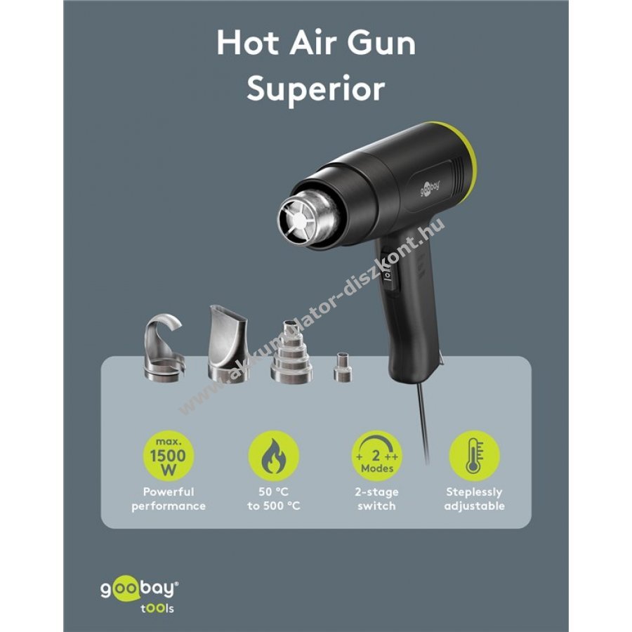 Goobay Tools Superior forrólevegő pisztoly 1500W állítható hőmérséklettel 4 cserélhető fejrész