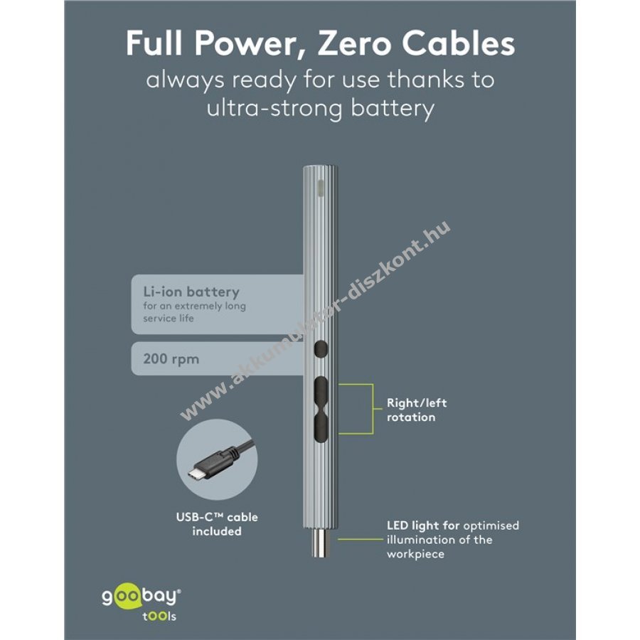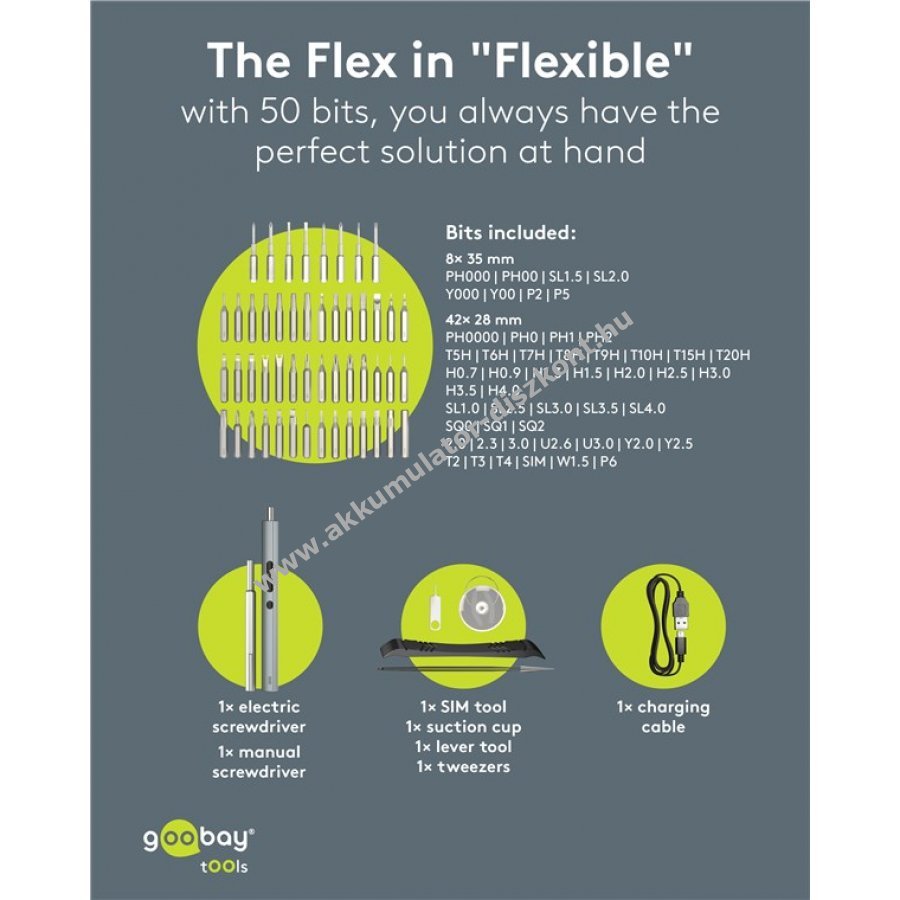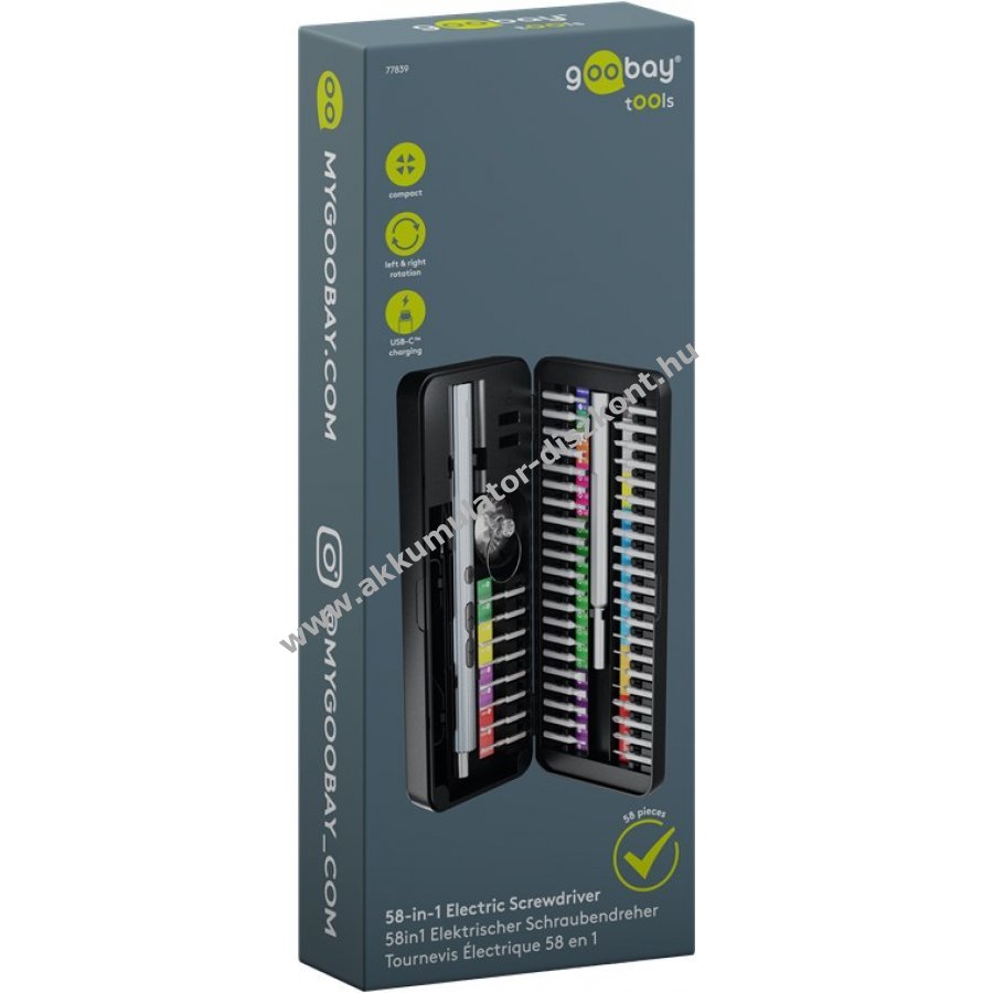 Goobay Tools 58in1 elektromos csavarhúzó 50 részes precíziós bitkészlettel