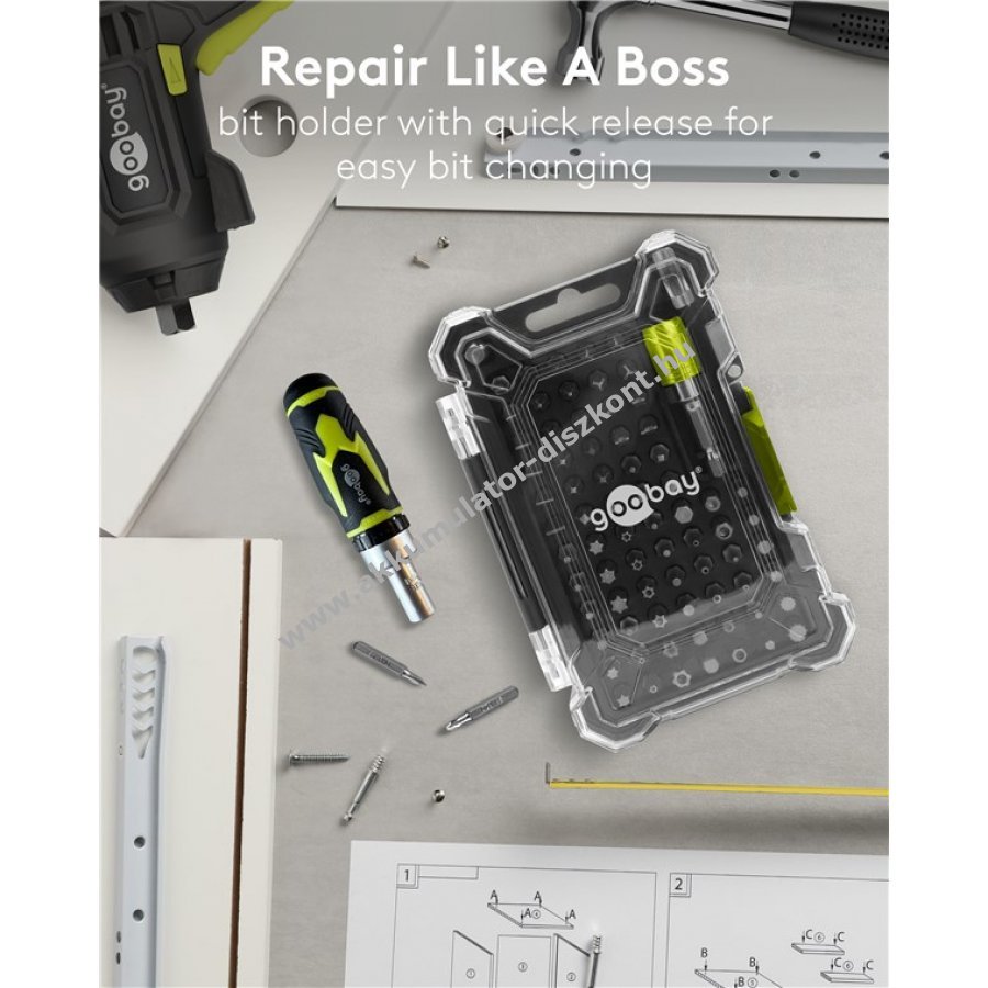 Praktikus bitkészlet változatos bitekkel kézi és gépi csavarozáshoz.