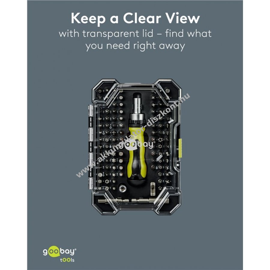 A bitkészlet szabványos méretű, így alkalmas kézi és akkumulátoros csavarozókhoz is.