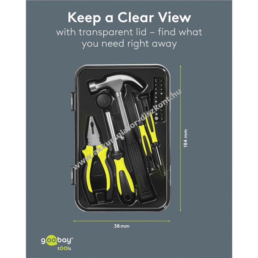 - praktikus szerszámkoffer átlátszó fedéllel a jó áttekinthetőségért