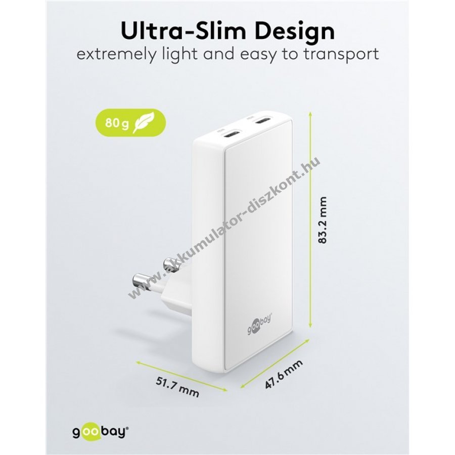Goobay USB-C PD GaN gyors töltő 45W 2x USB-C 90° lapos fehér