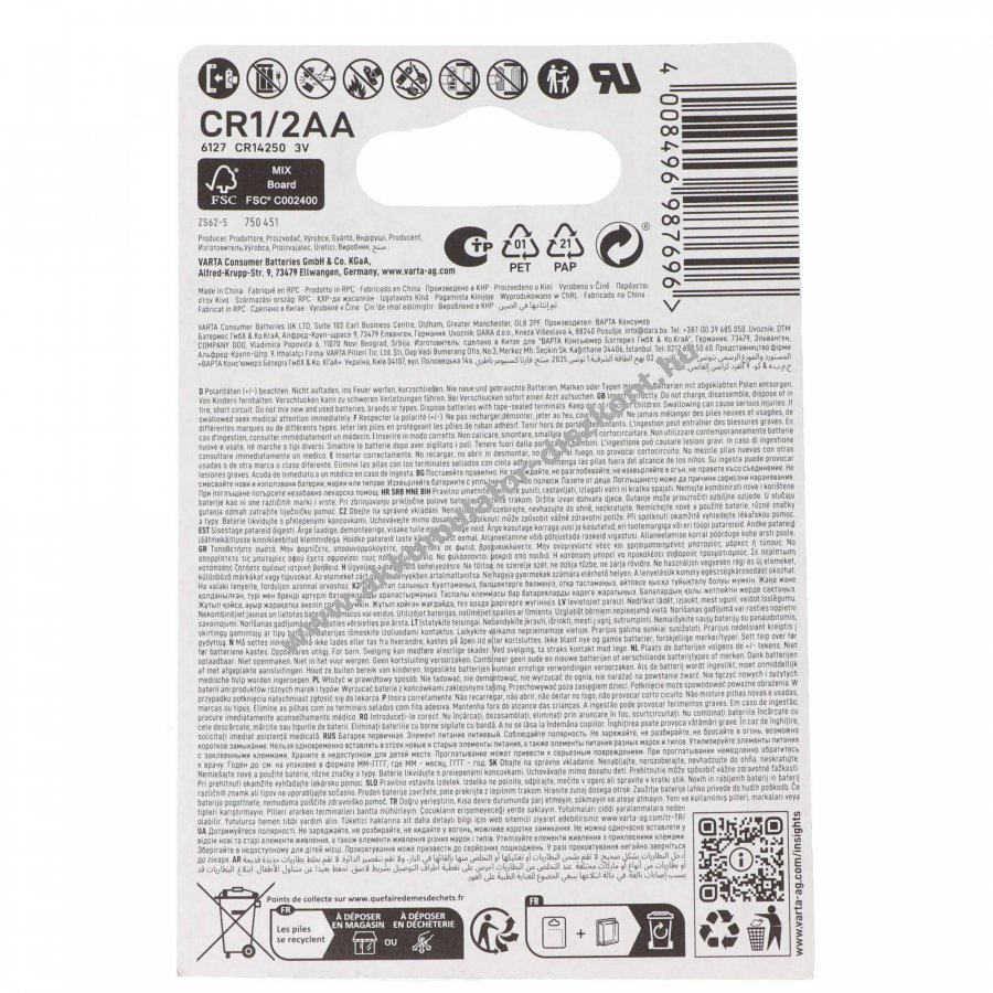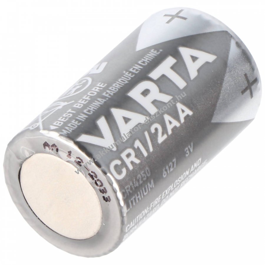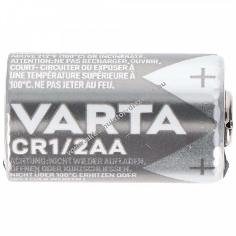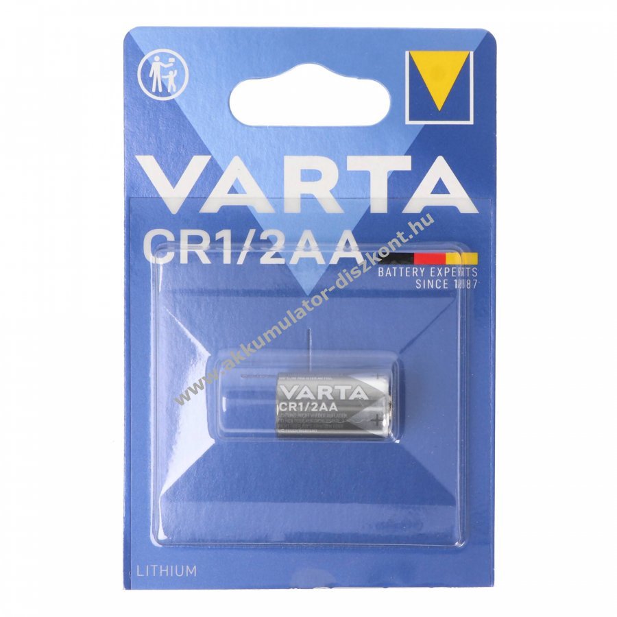 Varta CR 1/2 AA 3,0V 950mAh lítium-mangándioxid egyszer használatos elem, 1db/csomag (blister). Hosszú tárolhatóság, akár 10 év, és széles üzemi hőmérsékleti tartomány.