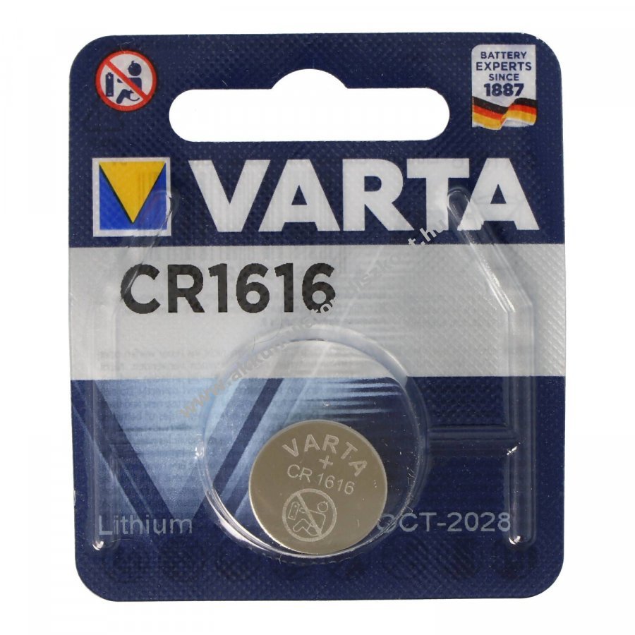 Varta CR1616 lítium elem, nagyon stabil feszültségleadást biztosít a lemerülés során és alacsony önkisülésének köszönhetően hosszú ideig tárolható.