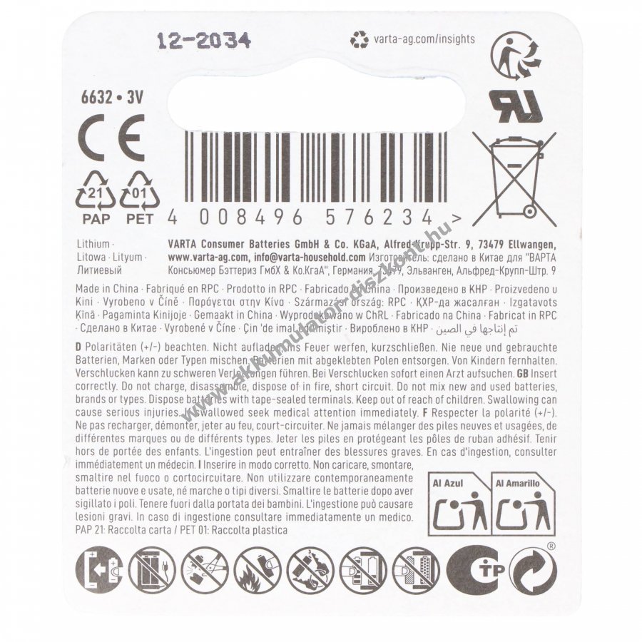 - Gyártó:Varta, cikkszám 06632101401