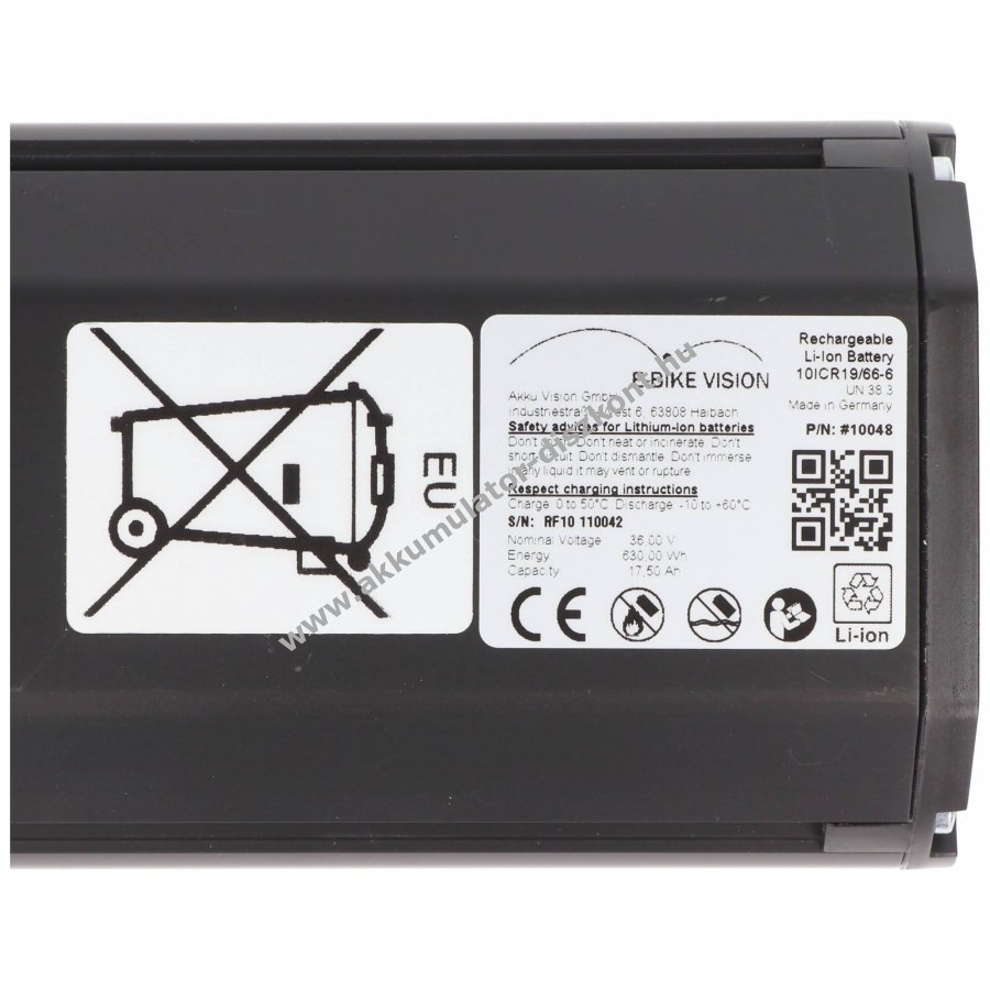 36V 17500mAh Li-ion 41.6mm x 84mm x 65mm e-bike-vision