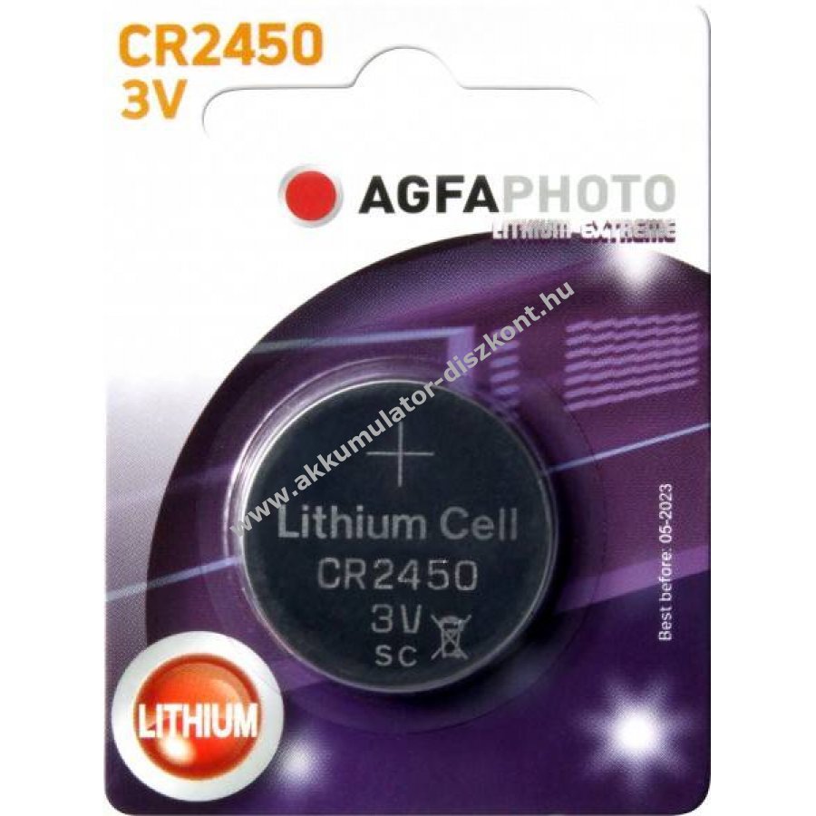 Agfaphoto CR2450 lítium gombelem 3V, kiszerelés 1db/csomag. Nagy teljesítménykapacitást kínál alacsony önkisüléssel, megbízható és biztonságos feszültségleadással, valamint kiváló működéssel szobahőmérsékleten és állandó feszültséggel alacsony hőmérsékleten (akár -40°C).