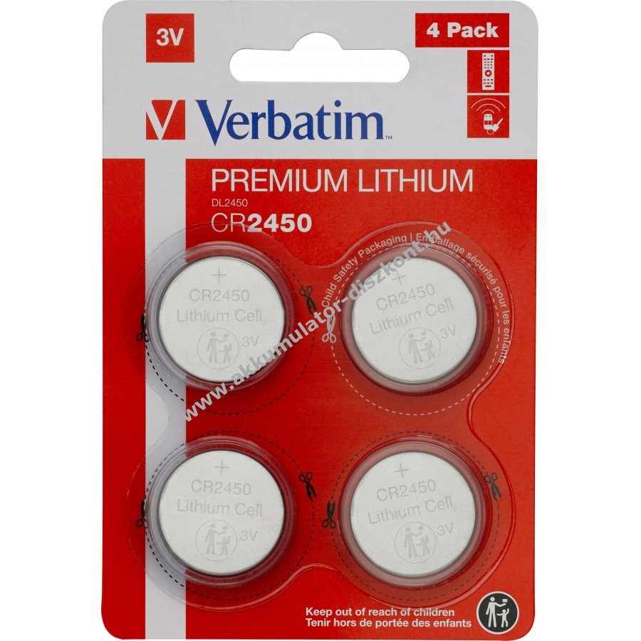 Verbatim lítium gombelem CR2450 3V 4db/csomag