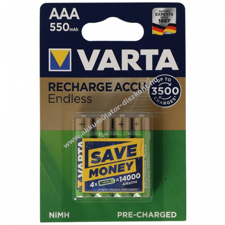 Varta Recharge Accu Endless AAA LR03 Akkumulátor 1,2V 550mAh 4db/csomag NiMH