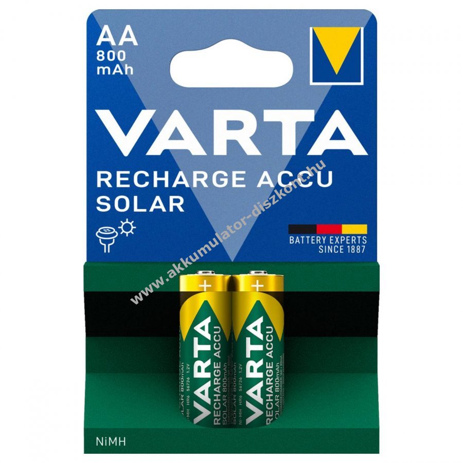 Varta Ready2Use AA Mignon ceruza NiMH akku 1,2V 800mAh, előre feltöltve és azonnal használatra kész. Kifejezetten napelemes lámpákhoz és vezeték nélküli telefonokhoz ajánlott memóriahatás-mentes és újratölthető akár 1000-szor.
