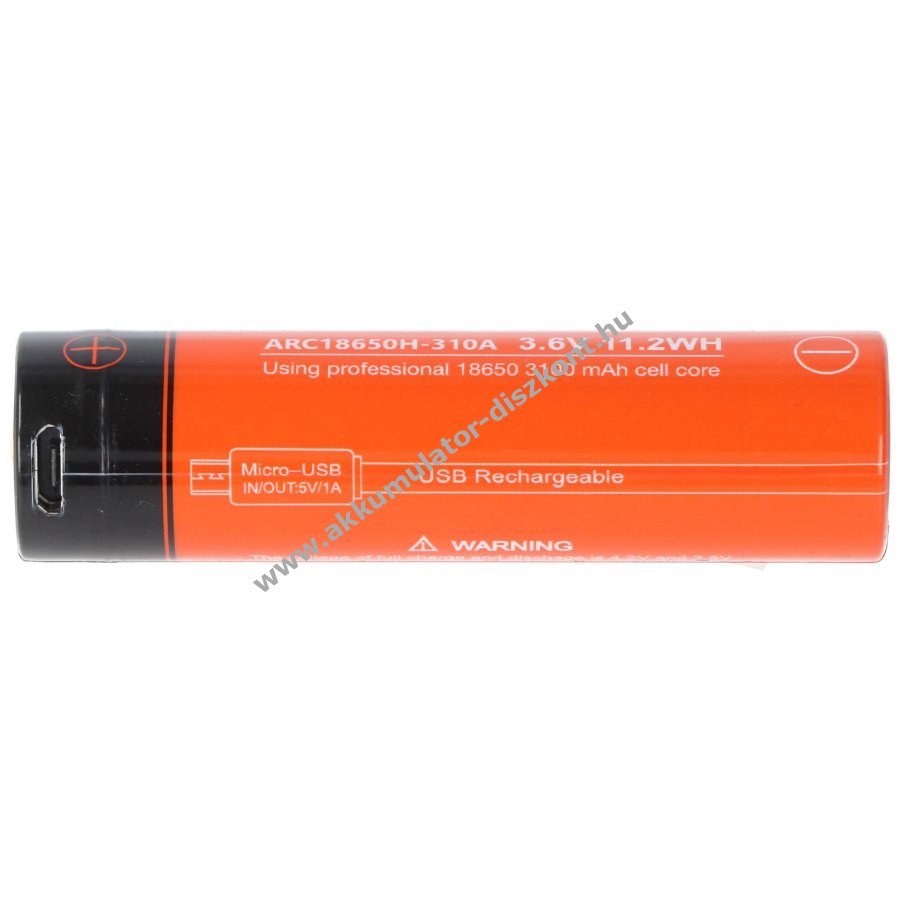 AceBeam 18650 Li-Ion Akkumulátormulátor 3,7V 3100mAh micro-USB töltőcsatlakozóval