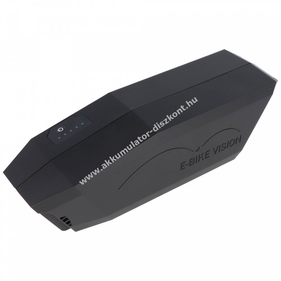E-bike-vision Unterrohr Power Pack E-Bike akku kompatibel a Bosch Active és Performance hajtásrendszerekkel, 10Ah kapacitással és 360Wh teljesítménnyel. A csomag tartalmaz 12V-os autós töltőt 2A töltőárammal, amely Bosch Powerpack 500 és más Bosch Performance Line modellekhez illeszkedik. A Samsung INR21700-50E cellákból álló 10S2P konfigurációjú Li-ion akkumulátor alacsony önkisüléssel és memóriahatás nélkül bírja a hosszú tárolást. Az intelligens BMS védi az akkut túltöltés, túlmelegedés, túlterhelés és mélykisülés ellen, optimalizálva az élettartamot. A könnyű, mindössze 1,8 kg súlyú akku a Bosch 300, 400 és 500 modelleket helyettesíti, egyszerűen beszerelhető, nem igényel szoftverfrissítést vagy beállítást.