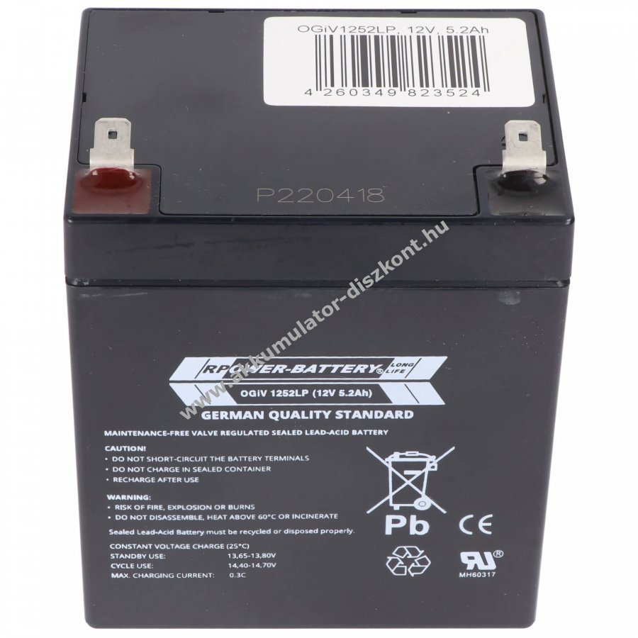 Ez a RPower savas ólom akkumulátor kiváló minőségű| és ideális választás hibás vagy régi akkumulátor cseréjéhez| illetve további pótakkumulátorként útközben. Az akkumulátor strapabíró felépítése és a kiváló minőségű anyagok biztosítják a hosszú élettartamot és a megbízható teljesítményt| még intenzív használat esetén is. Az ólom-savas technológia megbízható energiaellátást nyújt| és alkalmas különféle alkalmazásokhoz. Az akkumulátor használata és töltése egyszerű| a szokásos töltőn vagy tápegységen keresztül. Akkumulátoraink kizárólag új| minőségi anyagokból készülnek| garantálva a megbízhatóságot és a tartósságot.