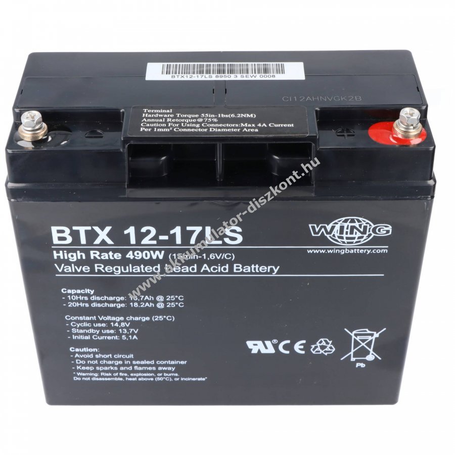 Ez a WING savas ólom akkumulátor kiváló minőségű| és ideális választás hibás vagy régi akkumulátor cseréjéhez| illetve további pótakkumulátorként útközben. Az akkumulátor strapabíró felépítése és a kiváló minőségű anyagok biztosítják a hosszú élettartamot és a megbízható teljesítményt| még intenzív használat esetén is. Az ólom-savas technológia megbízható energiaellátást nyújt| és alkalmas különféle alkalmazásokhoz. Az akkumulátor használata és töltése egyszerű| a szokásos töltőn vagy tápegységen keresztül. Akkumulátoraink kizárólag új| minőségi anyagokból készülnek| garantálva a megbízhatóságot és a tartósságot.