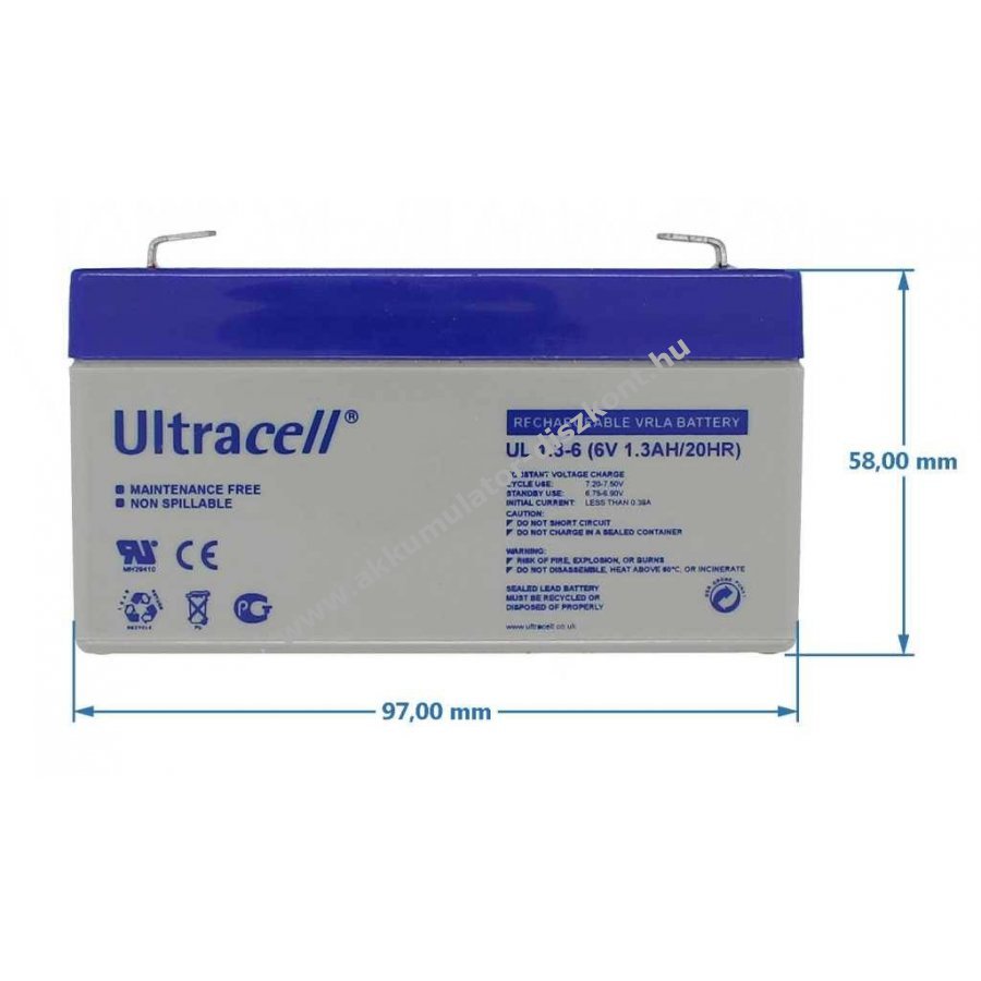 12V 1300mAh/15.6Wh Pb 97mm x 24mm x 58mm Ultracell