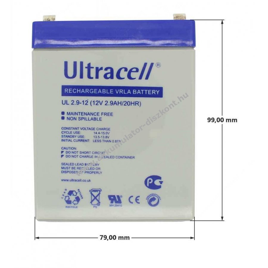 12V 2900mAh/34.8Wh Pb 79mm x 56mm x 99mm Ultracell