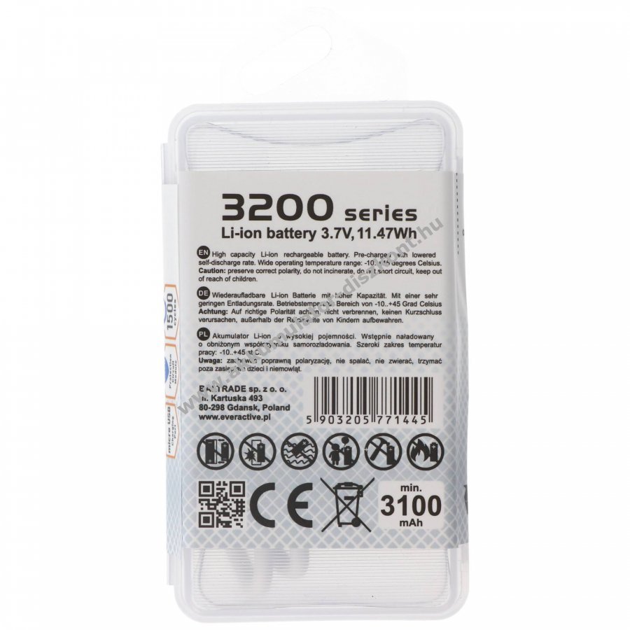 3.7V 3200mAh/11.84Wh Li-Ion 70.2mm x 18.4mm everActive