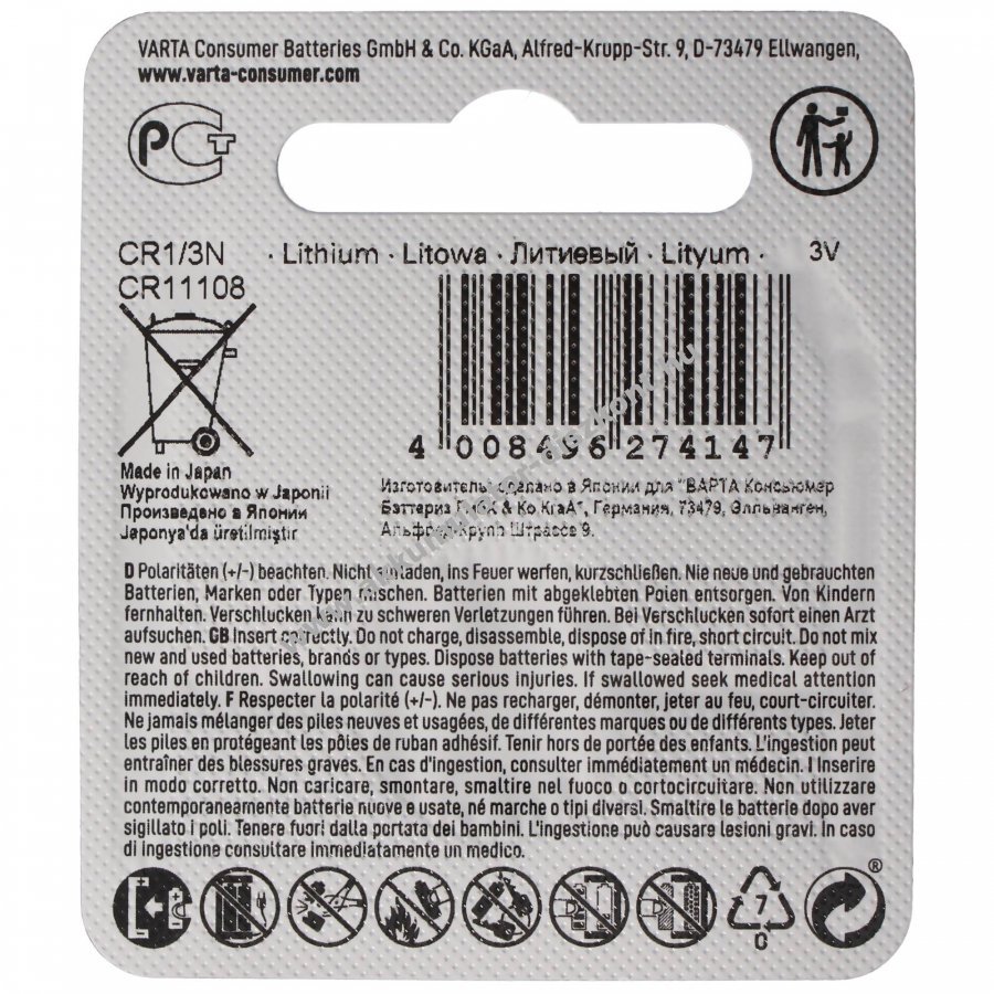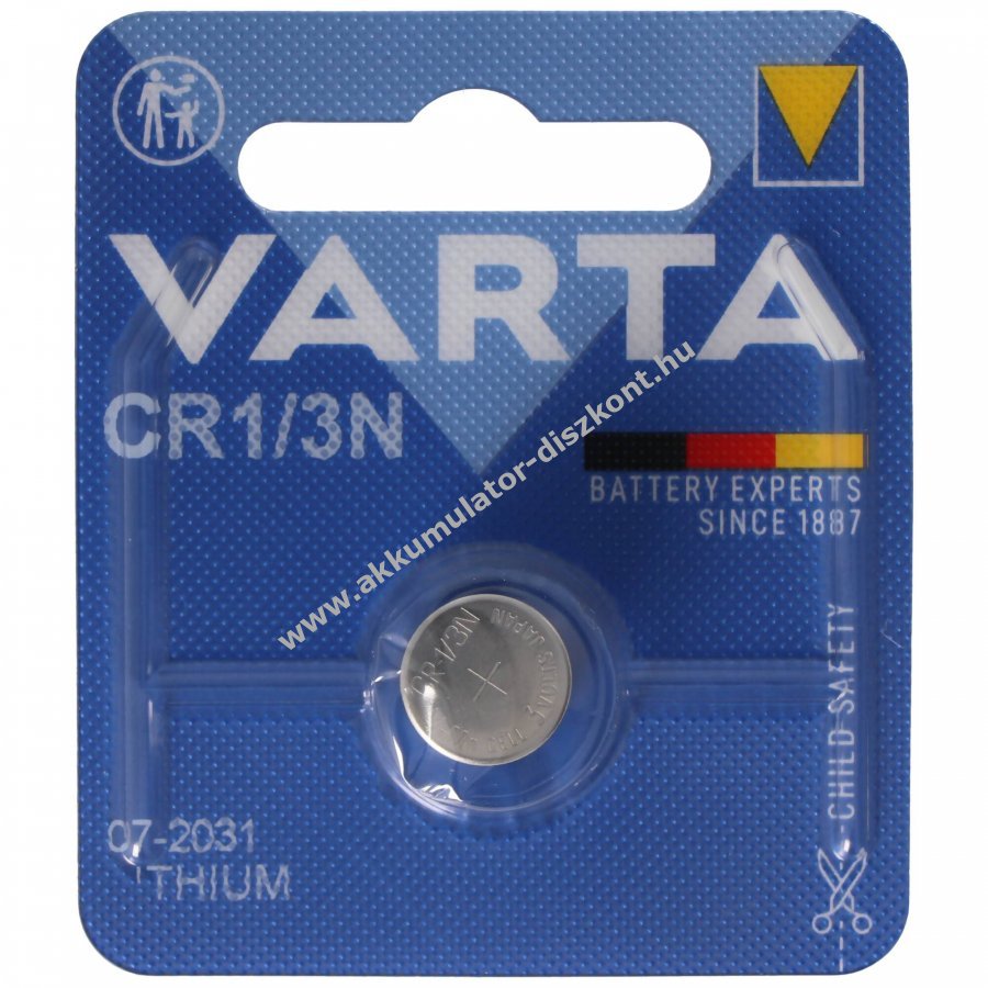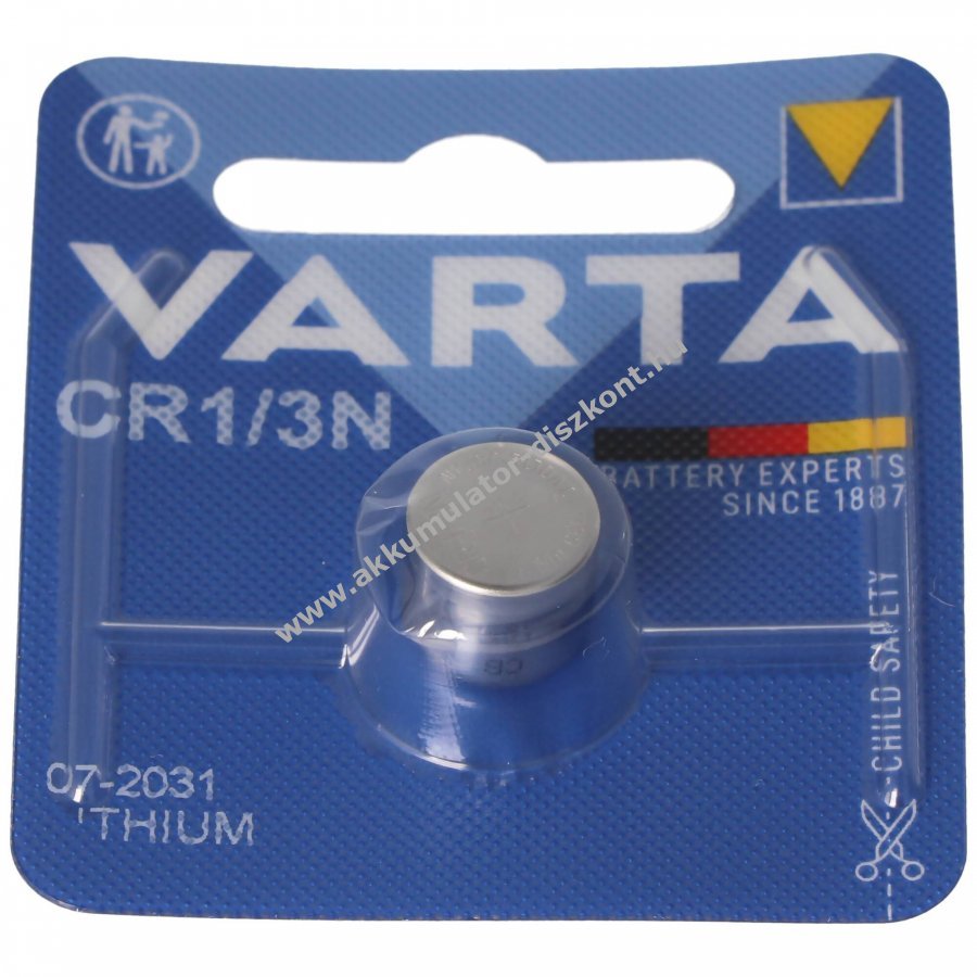 Varta CR1/3N lítium primer elem 3,0V 170mAh, nagy kapacitás és megbízható teljesítmény digitális fényképezőgépekhez és egyéb elektronikai eszközökhöz. Akár 10 év tárolhatóság.