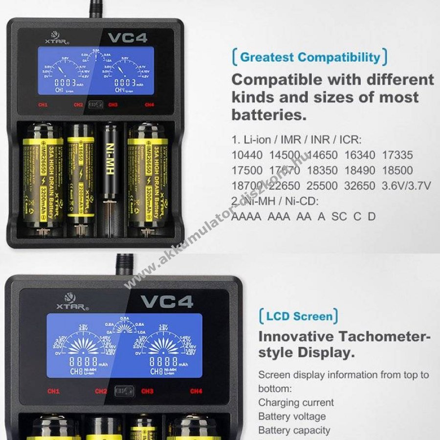 4.2V Li-Ion - Lithium-Ionen, NiMH - Nickel-Metallhydrid 149mm Xtar