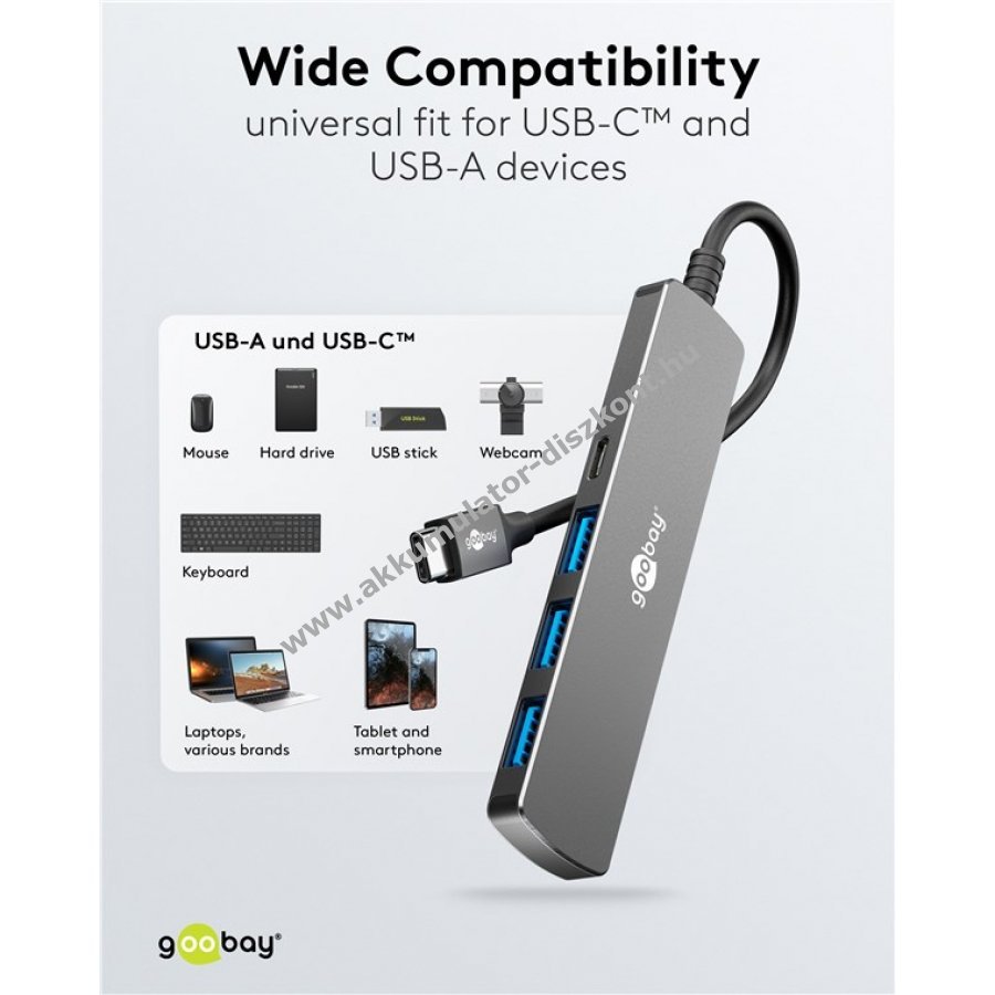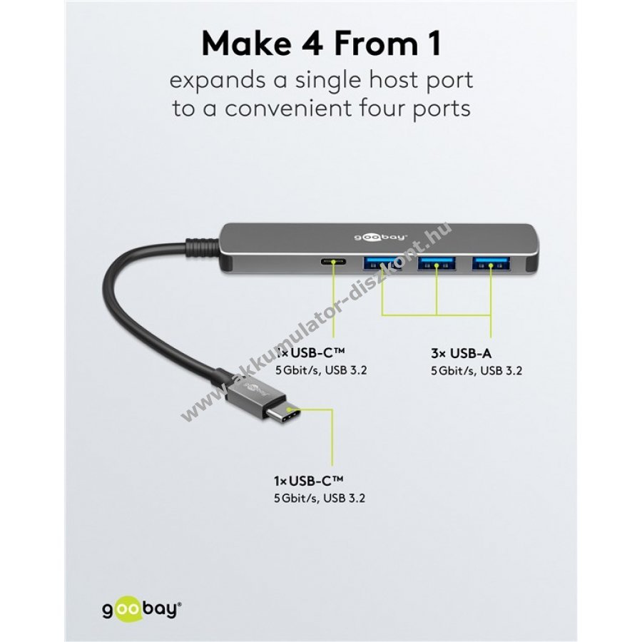 Goobay Slim 4 portos USB-C hub USB 3.2 5Gbit/s USB-C és USB-A csatlakozókkal