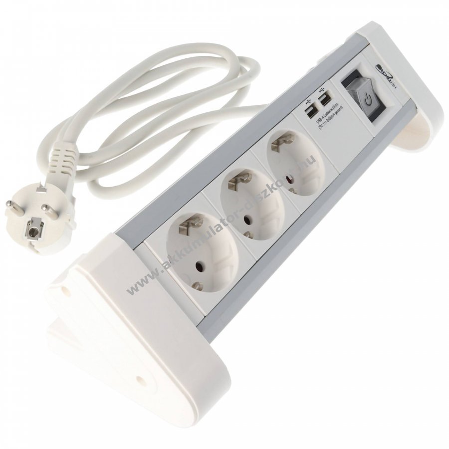 3-as asztali elosztó 2 USB töltőaljzattal gyermekvédelemmel Schuko dugóval