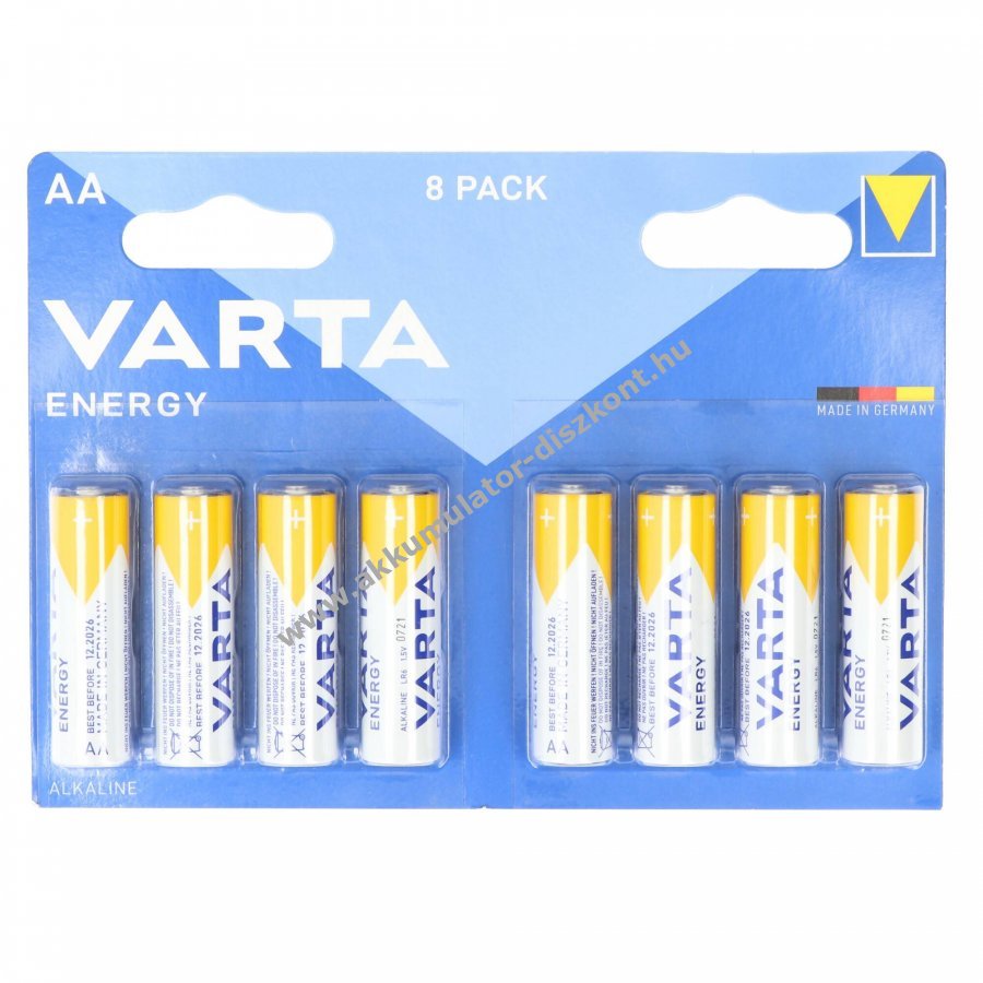 Varta Energy alkáli elemek jó ár-érték arányt és hosszú üzemidőt biztosítanak alacsony fogyasztású készülékekhez, például távirányítókhoz, faliórákhoz és rádiókhoz. Gyártva Németországban, tárolhatóság: 5 év.
