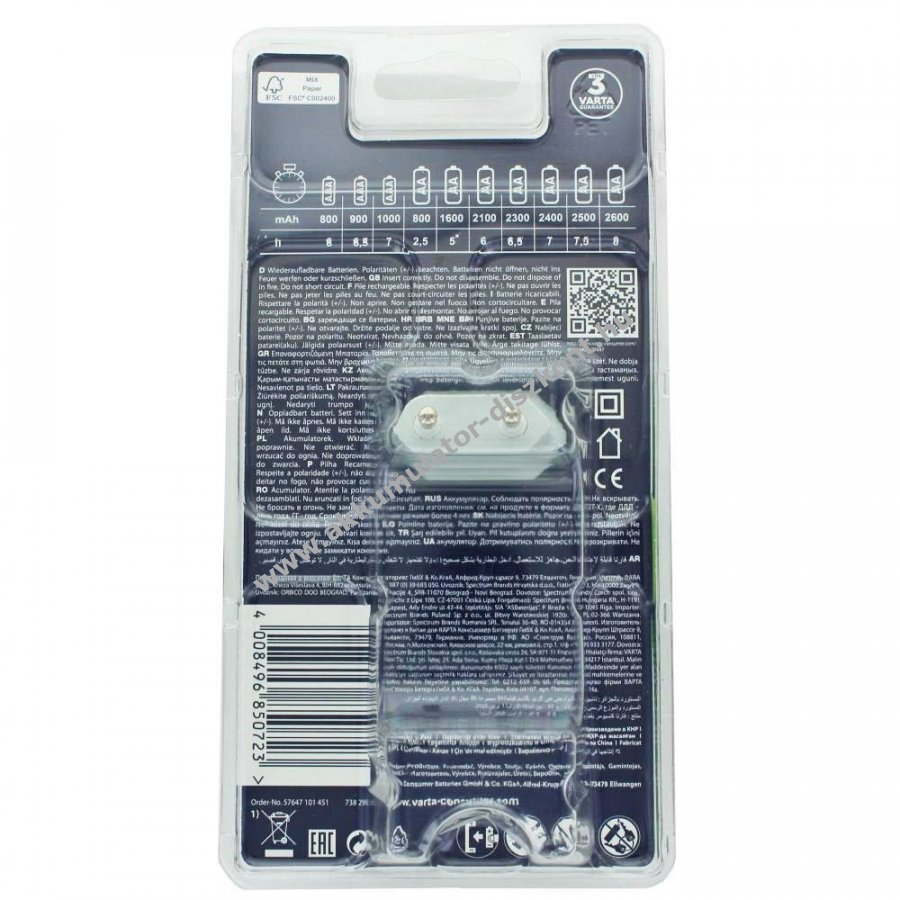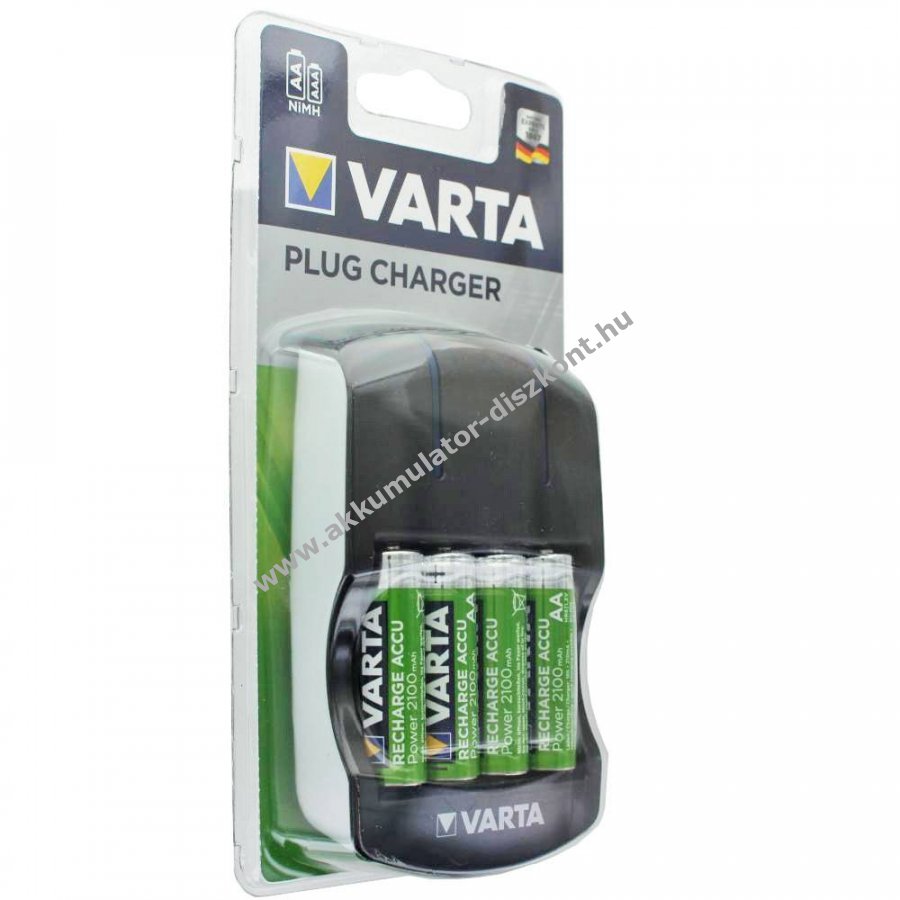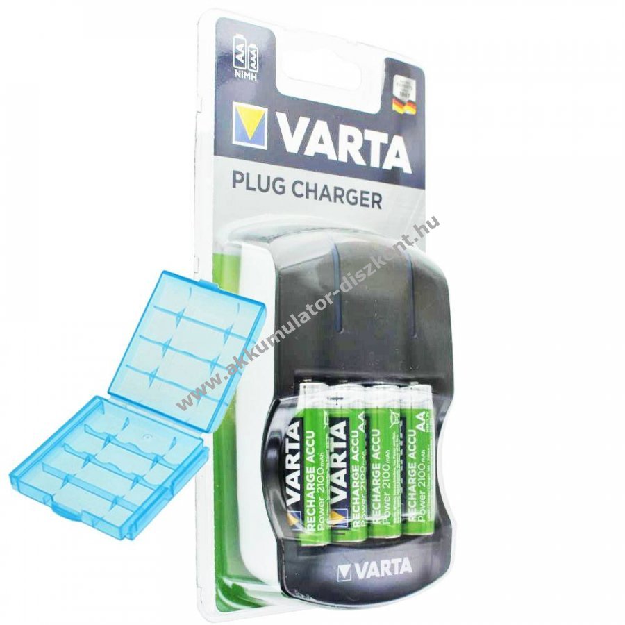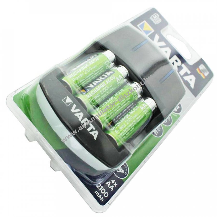 Varta csatlakozó-töltő, 4db AA Mignon ceruza Ready2use 2100mAh akkumulátorral. Kompakt és elegáns kialakítás, jól látható kék LED töltésjelző és biztonsági kikapcsolás a túltöltés megakadályozására.