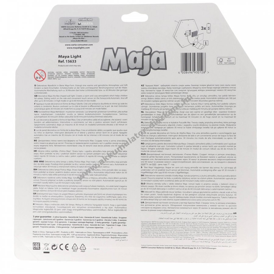 Varta Die Biene Maja mintás, elemmel működő LED fali lámpa egyszerű kezeléssel és automatikus kikapcsoló funkcióval.