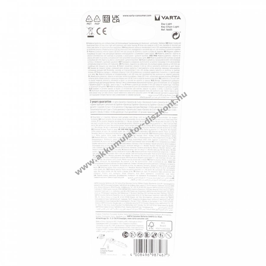 Varta LED zseblámpa Day Light kulcstartó 12lm 1x AAA alkáli 1,5V