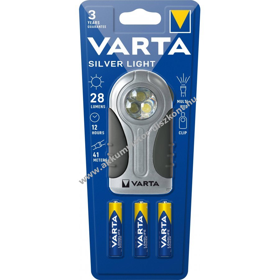 Varta LED zseblámpa Silver Light 28lm 3db AAA alkáli elem csomag