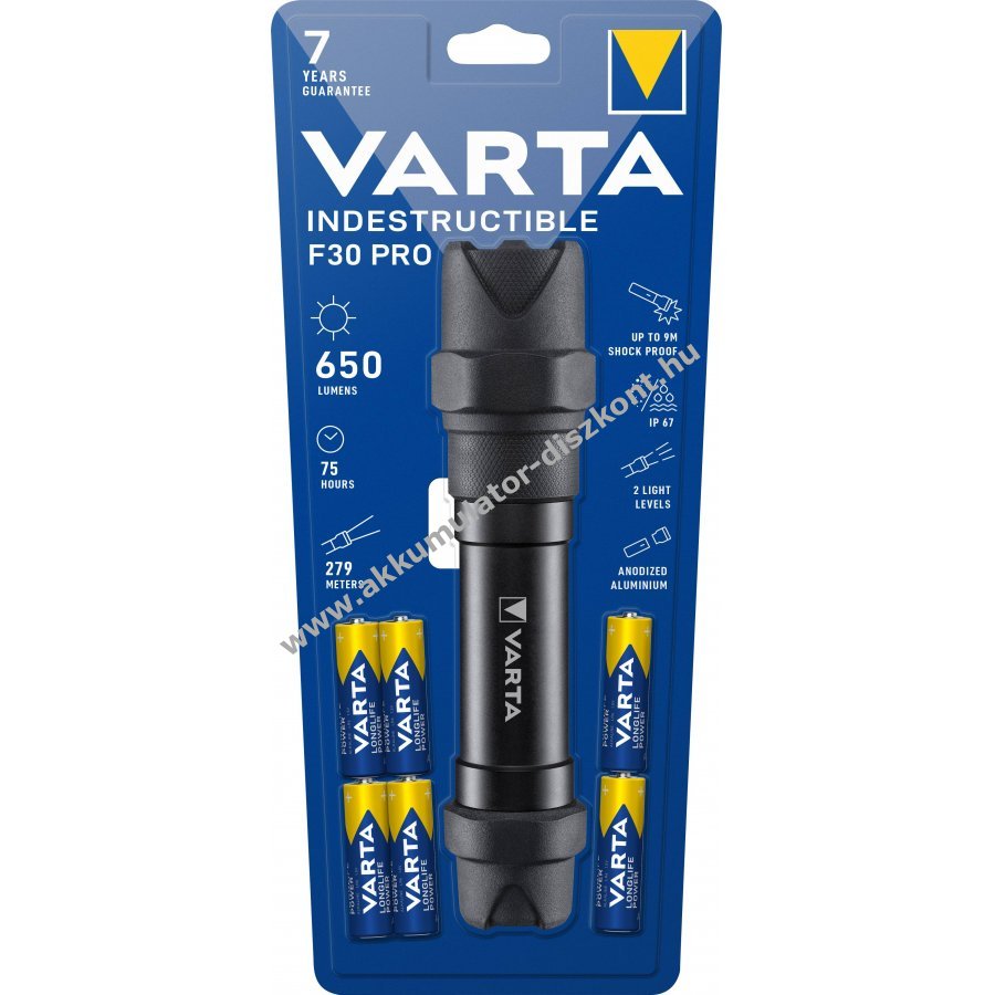 Varta LED zseblámpa Indestructible F30 Pro 650lm 6db AA alkáli elem csomag
