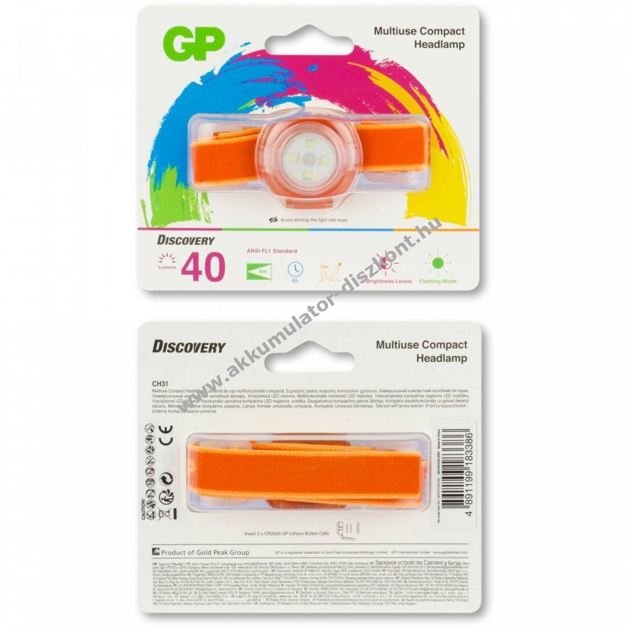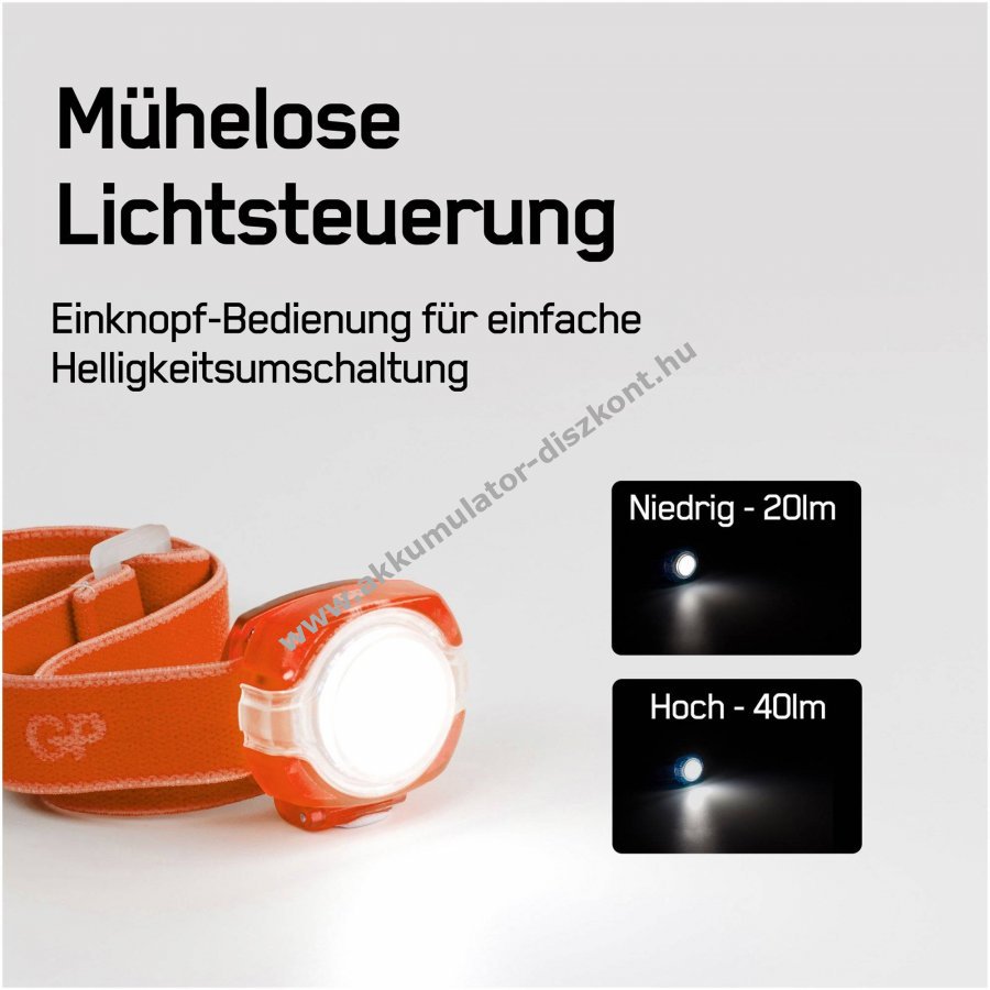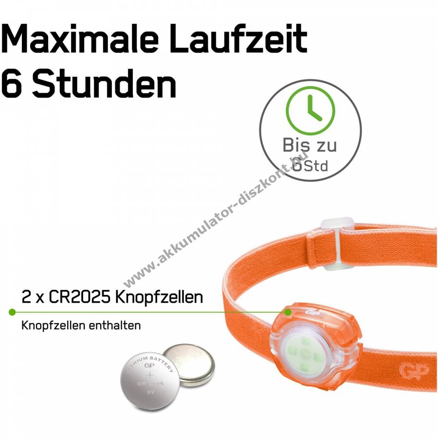 GP CH31 fejlámpa 40lumen 2db CR2025 lítium gombelem narancs