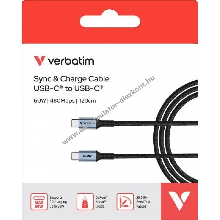 Verbatim USB-C töltőkábel 1.2m 60W 480MBit/s fekete