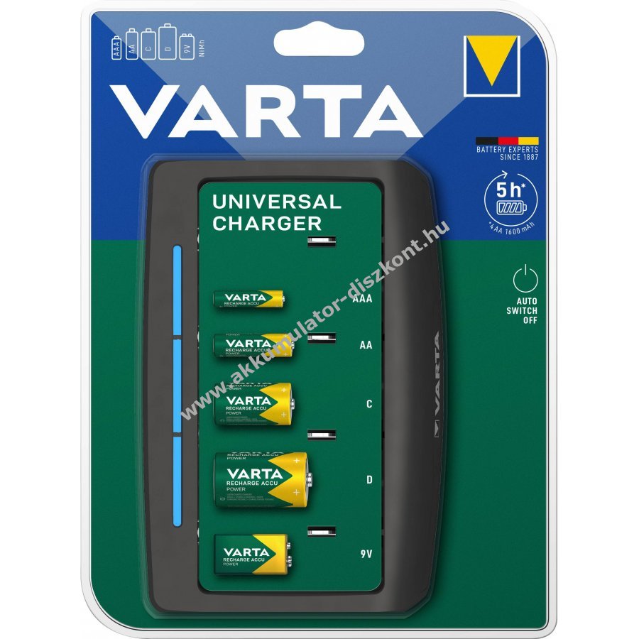 Ez az asztali Varta univerzális akku töltő NiMH akkumulátorokhoz három beépített LED-del jelzi a töltési állapotot, biztonsági időzítővel rendelkezik és 110-240V bemenettel világszerte használható. Akkuk nélkül szállítjuk.