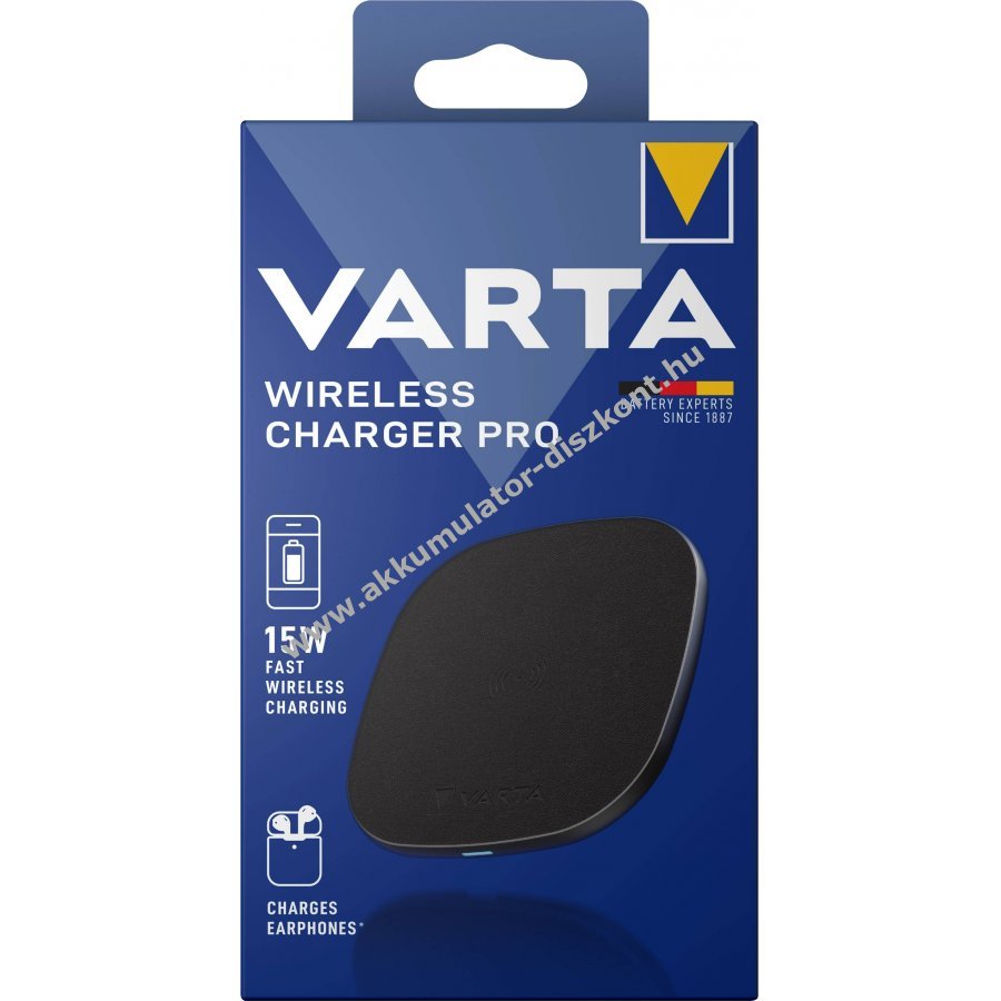 Qi-tanúsítással rendelkező Varta Fast Wireless Charger Pro vezeték nélküli töltő, amely lehetővé teszi a kompatibilis eszközök akár 15W-os töltését a töltés a készülék töltőfelületre helyezésével azonnal elindul.