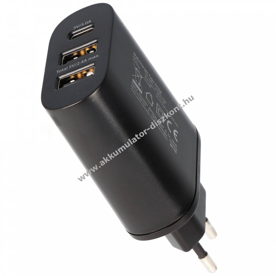 - 1x USB-C (3A) és 2x USB-A (2.4A) csatlakozó