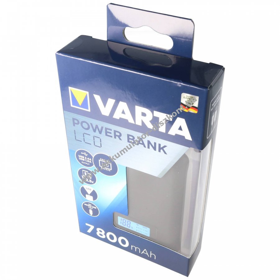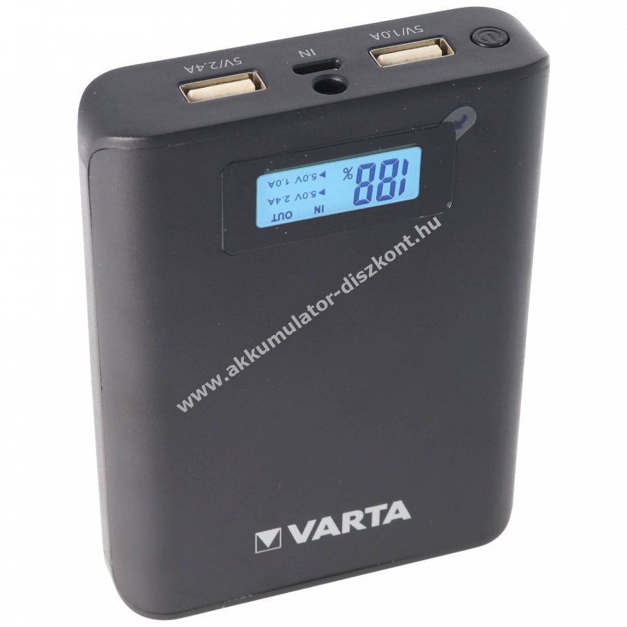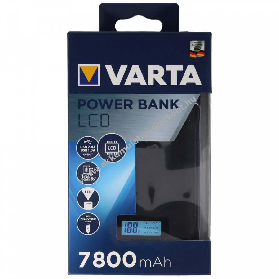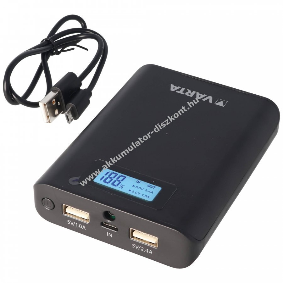 Kompakt és erőteljes Varta powerbank LCD kijelzővel, amely a töltés és kisütés állapotát mutatja. Ideális útközben: egyszerre egy vagy két eszköz töltésére alkalmas, beépített LED vészvilágítással, tartozékként micro USB töltő- és adatkábel jár hozzá.