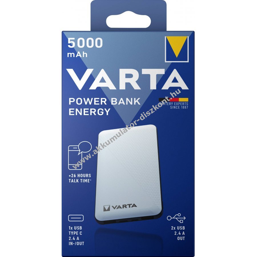 Varta Powerbank Energy 5V 5000mAh fehér Akkumulátor Li-Polymer