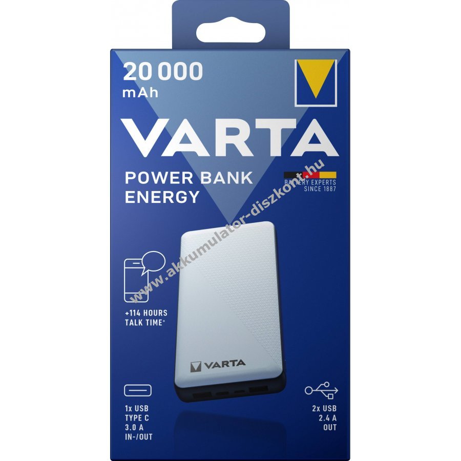 A Varta Energy powerbank elegáns, texturált kivitelű külső akkumulátor, amely gyors töltést biztosít akár három eszköz számára, Pass-Through töltést és töltöttségi jelzést kínál