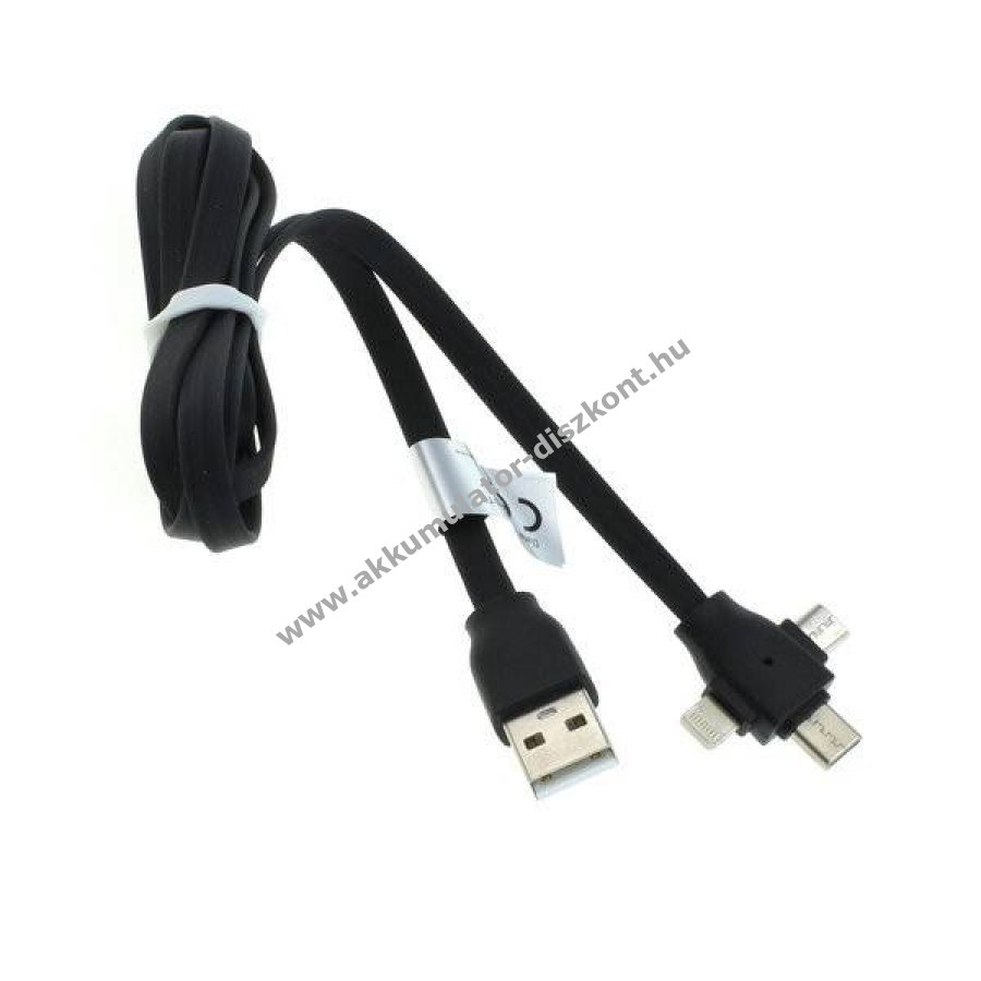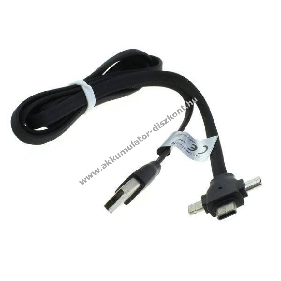 USB flachband adatkábel 3in1 iPhone Micro-USB USB-C 1m fekete