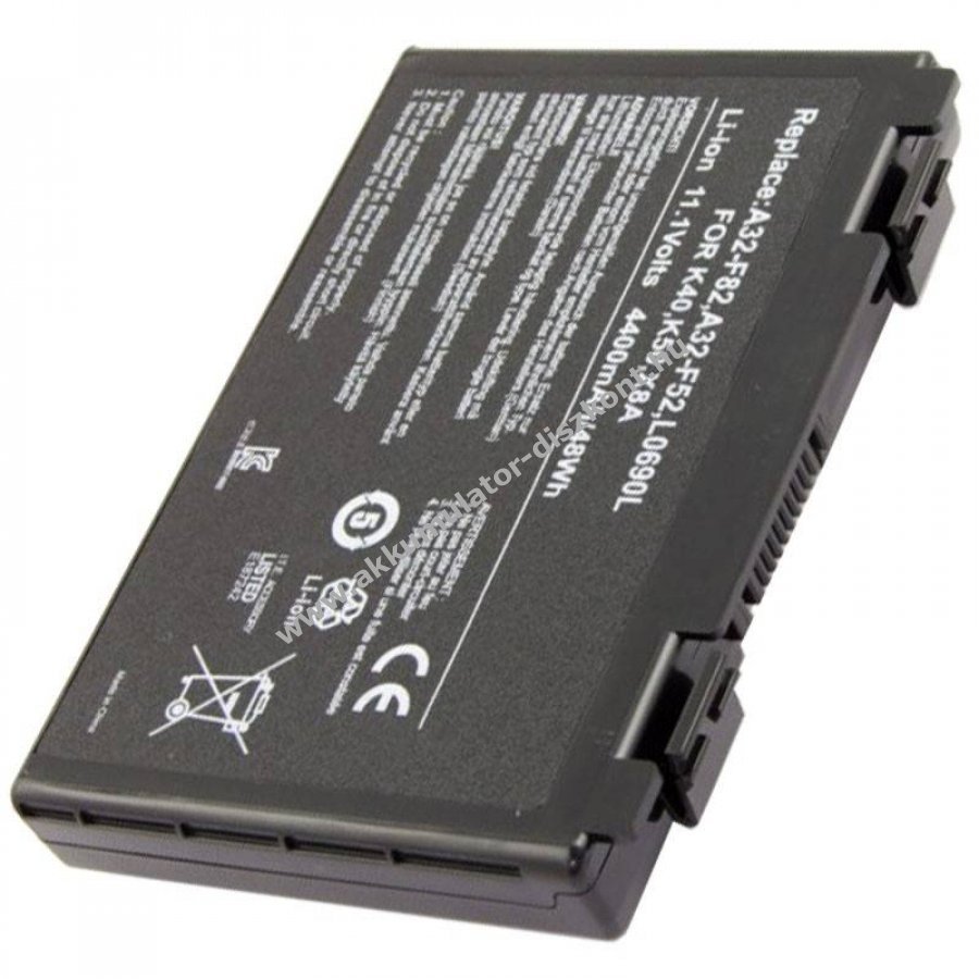 Utángyártott (nem eredeti) Li-Ion laptop akkumulátor ASUS A32-F82 és kapcsolódó modellekhez. Kapacitás 4400mAh (48,8Wh), feszültség 11,1V, szín fekete. Méretek 120,7x82,5x19,4mm, tömeg 311g.