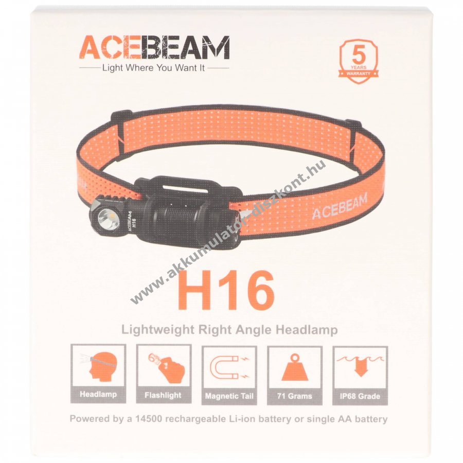 AceBeam H16 LED fejlámpa 650 lumen 5000K 14500 Li-Ion