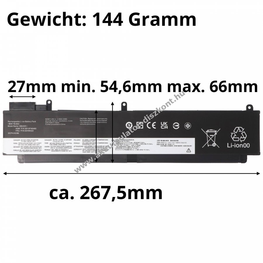 Ez a LENOVO akkumulátortípusokra vonatkozó ajánlat egy kiváló minőségű akkumulátor| amely ideális a régi vagy hibás LENOVO laptop akkumulátor csereakkumulátoraként| de akár útközben kiegészítő csereakkumulátorként is. Használja és töltse fel az akkumulátort a szokásos módon| egyszerűen a szabványos töltőn|tápegységen keresztül. A védőelektronika és a kiváló minőségű alkatrészek feldolgozása magas szintű biztonságot nyújt| mind a túltöltés| mind a rövidzárlat ellen. Ez lehetővé teszi az akkumulátor számára| hogy több töltési-kisütési ciklust érjen el. Ez az új akkumulátor hosszabb élettartamát jelenti. Akkumulátoraink kizárólag új| minőségi márkás cellákkal készülnek.