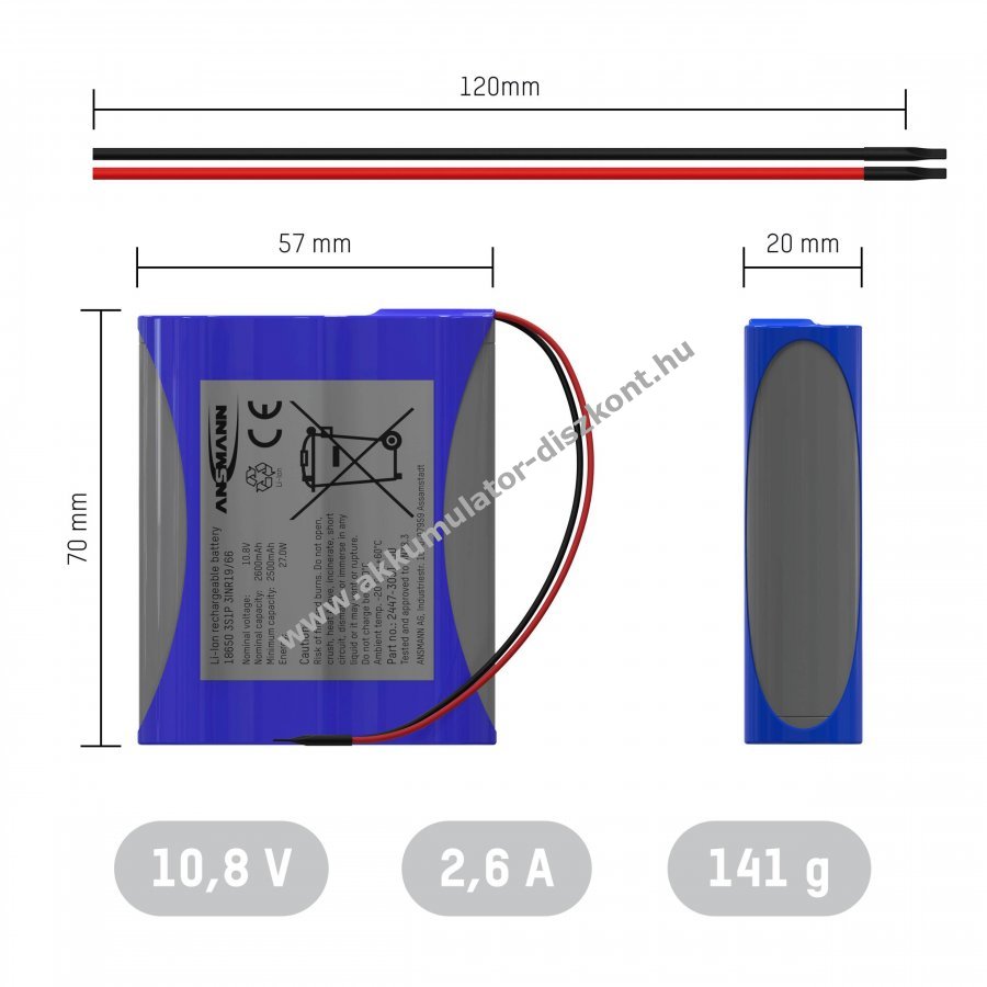 10.8V 2600mAh/27.5Wh Li-Ion kék 7mm x 5.7mm x 1.9mm Ansmann